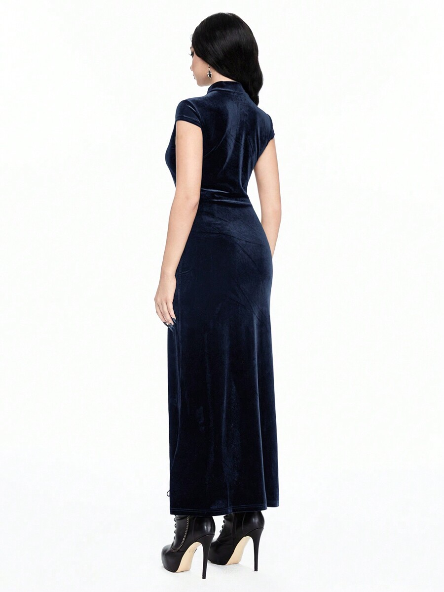 Gothic Vampire Skinny Cross Figurbetontes Kleid mit hohem Schlitz, Cut Out