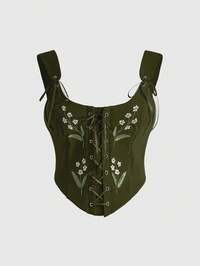 Fairycore Große Größen Blumen bestickte Vintage Palast Stil Trägerhemd und Trägershirt