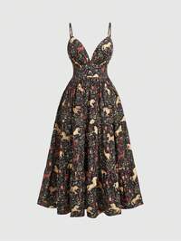 Fairycore Damen Große Größen Sommer Urlaubsstil Einhorn Allover Muster Taille Raffung Trägerkleid