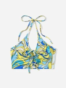 Trägertop mit Grafik, Schnürzug und Rüschen