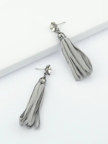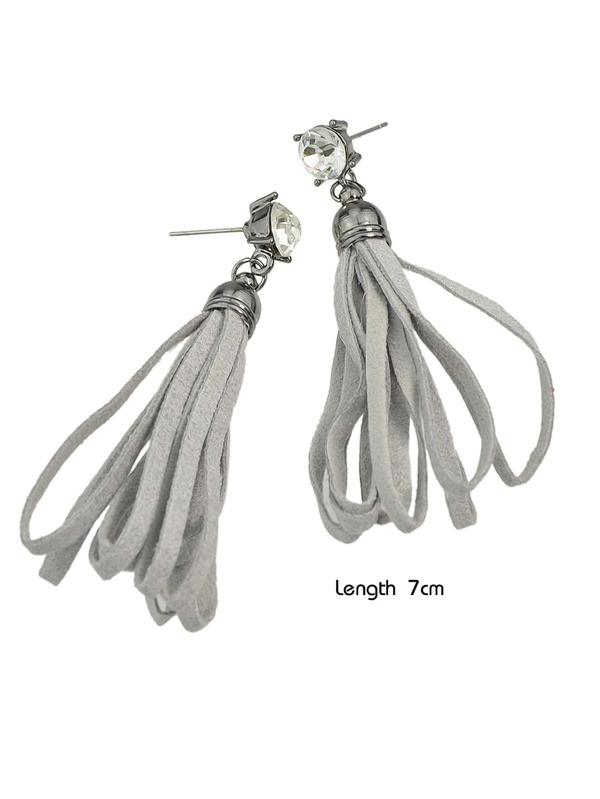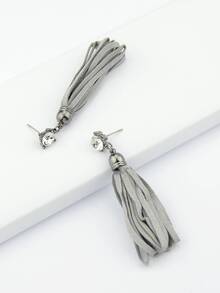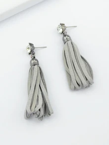 Ohrring lang PU Leder mit Quaste - grau