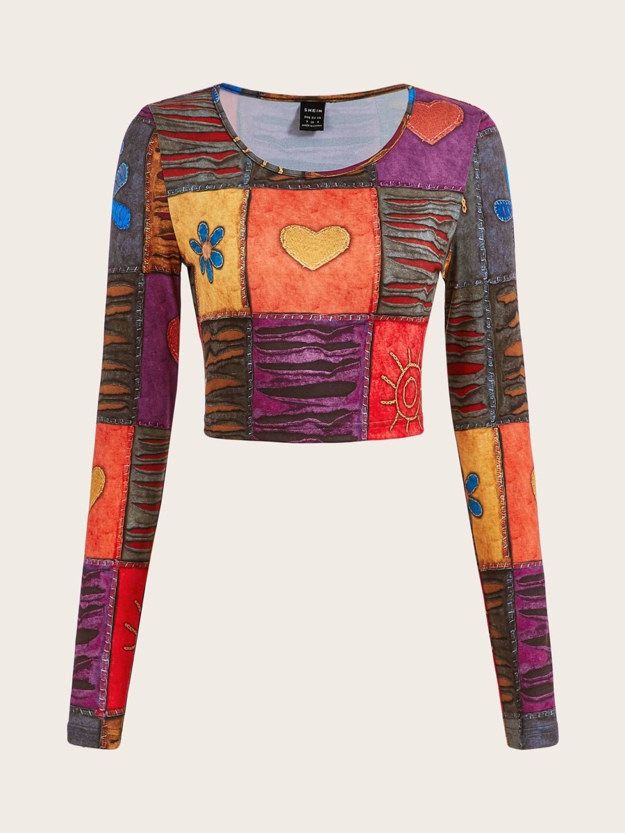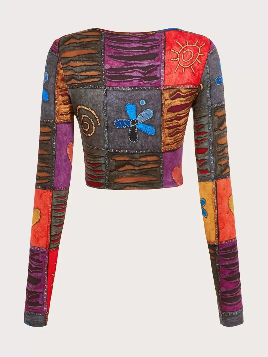 Grunge Crop T-Shirt mit Patchwork Muster