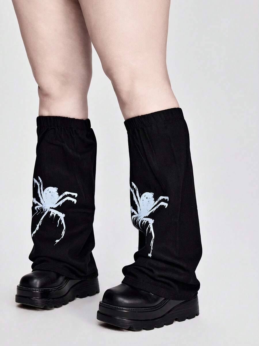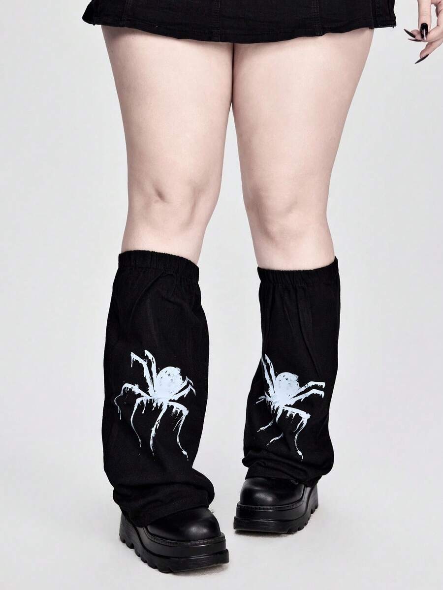 Grunge Punk 1 Paar schwarze Spinnenmuster Modische Damen Beinstulpen, Halloween