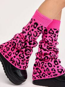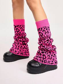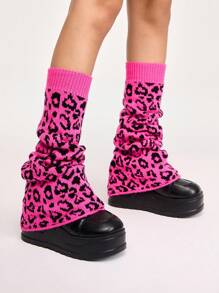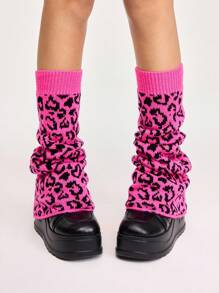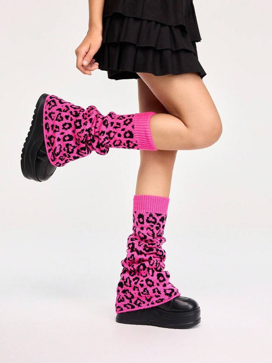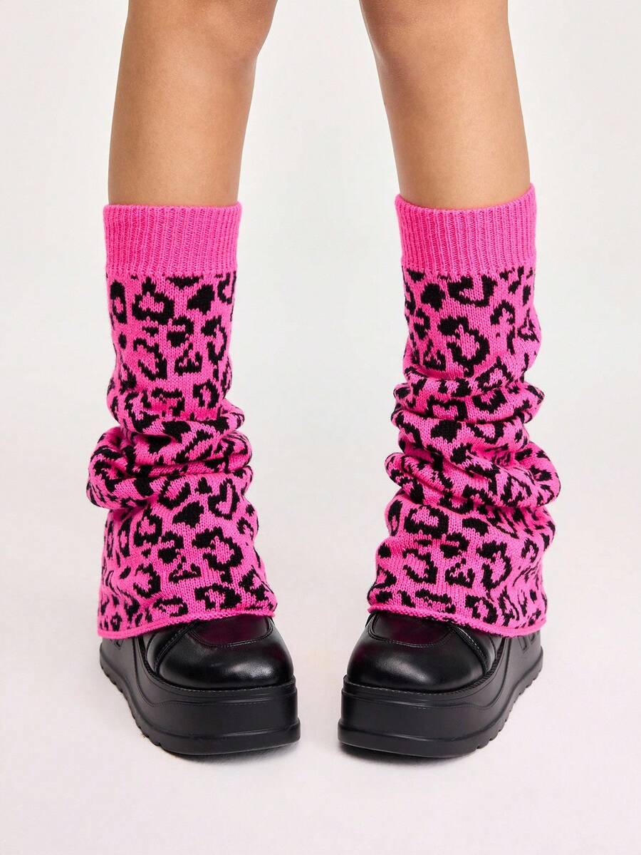 Grunge Punk 1 Paar süße Kawaii Herz- und Leoparden-Muster Weiß Hintergrund Beinwärmer