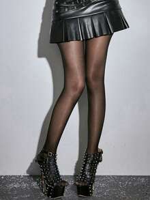 Grunge Punk 1 Paar sexy Skelett-Muster Strumpfhosen, Y2K minimalistischer Stil einfarbig schwarz Strumpfhosen, super dünne elastische transparente Leggings