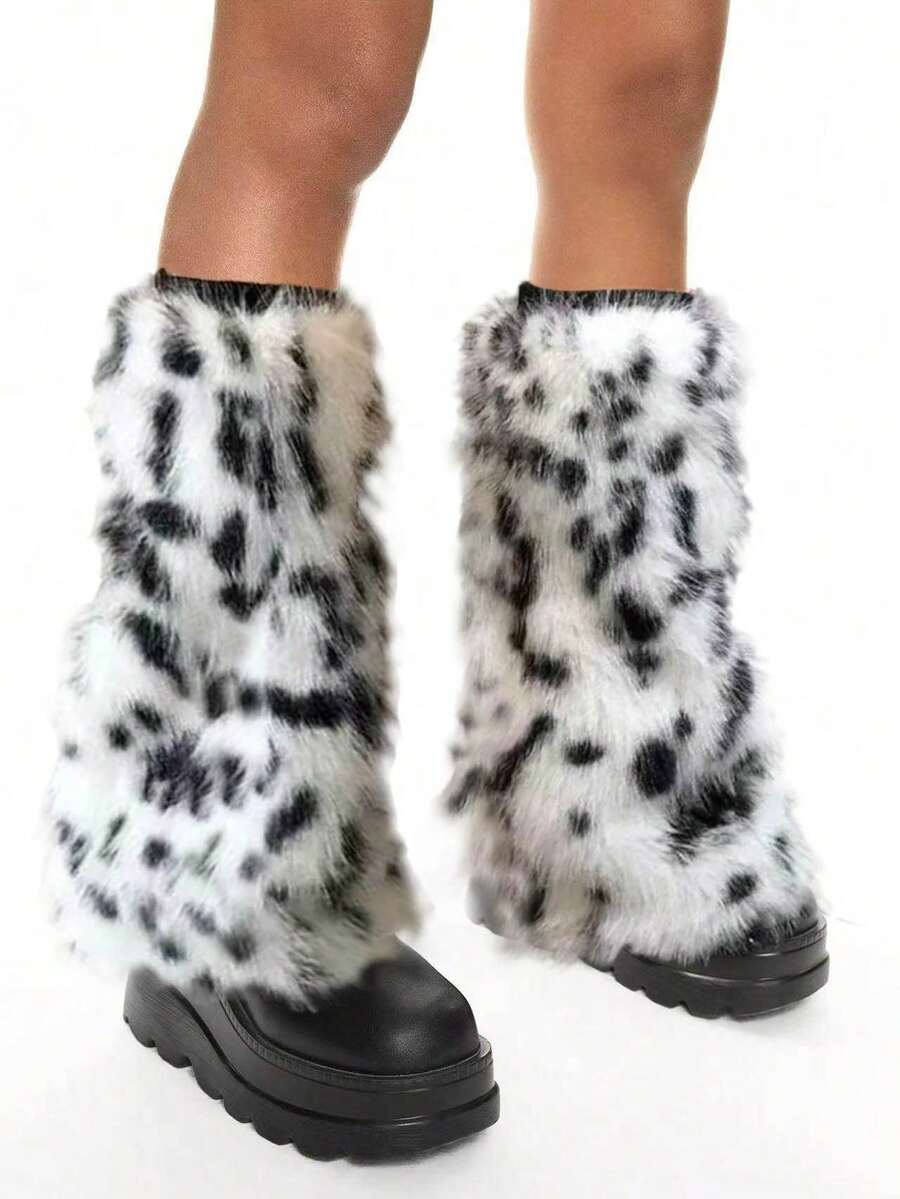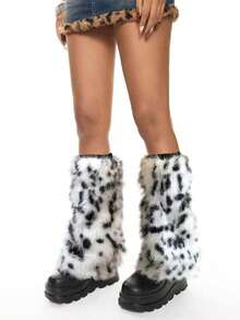 Grunge Punk 1 Paar Leoparden-Muster stylische und warme flauschige Beinwärmer für Frauen