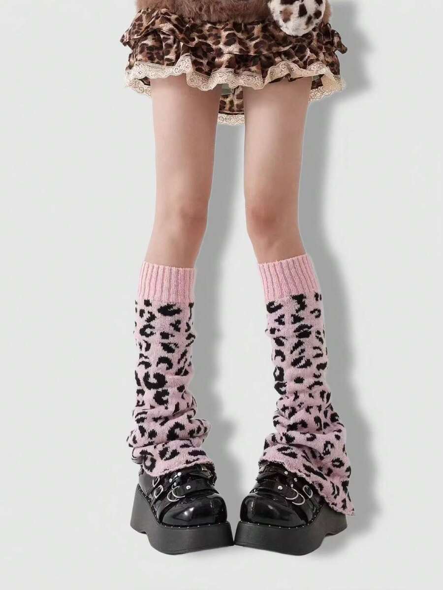 Grunge Punk 1 Paar Leoparden-Muster stilvolle und warme Beinwärmer für Frauen