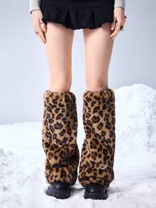 Grunge Punk 1 Paar Leoparden-Muster stilvolle und warme Beinwärmer für Frauen