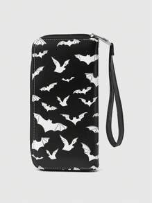 Grunge Punk 1 Stück Gothic Fledermaus Muster Multifunktions Kreditkarten Halter Münzbörse, Mode Party Punk Reißverschluss Lang Geldbörse, Unisex Handgelenk Clutch