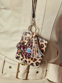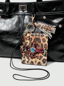 Grunge Punk 1 Stück handgemachter Schlüsselanhänger mit Leopardenmuster und Nieten, modischer Anhänger