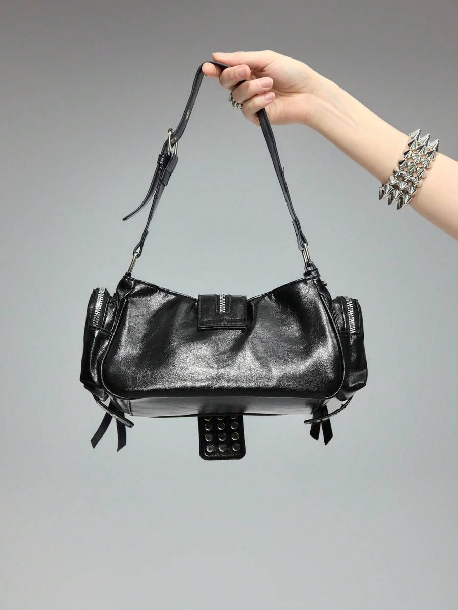 Grunge Punk 1 Stück Motorrad Punk beschlagene Taillentasche, Bikerstil Schultergurtumhängetasche, Retro Kuriertasche im n Stil für Frauen