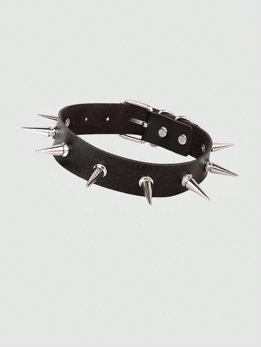 Grunge Punk 1 Stück personalisierter Punk Gothic Spike Nieten PU Leder Kragen Choker Halskette, geeignet für Damen Alltagskleidung, Halloween