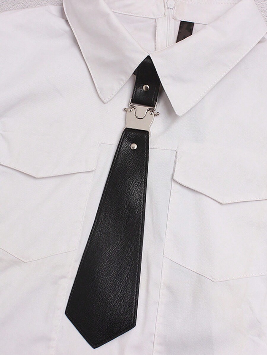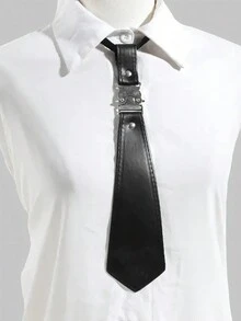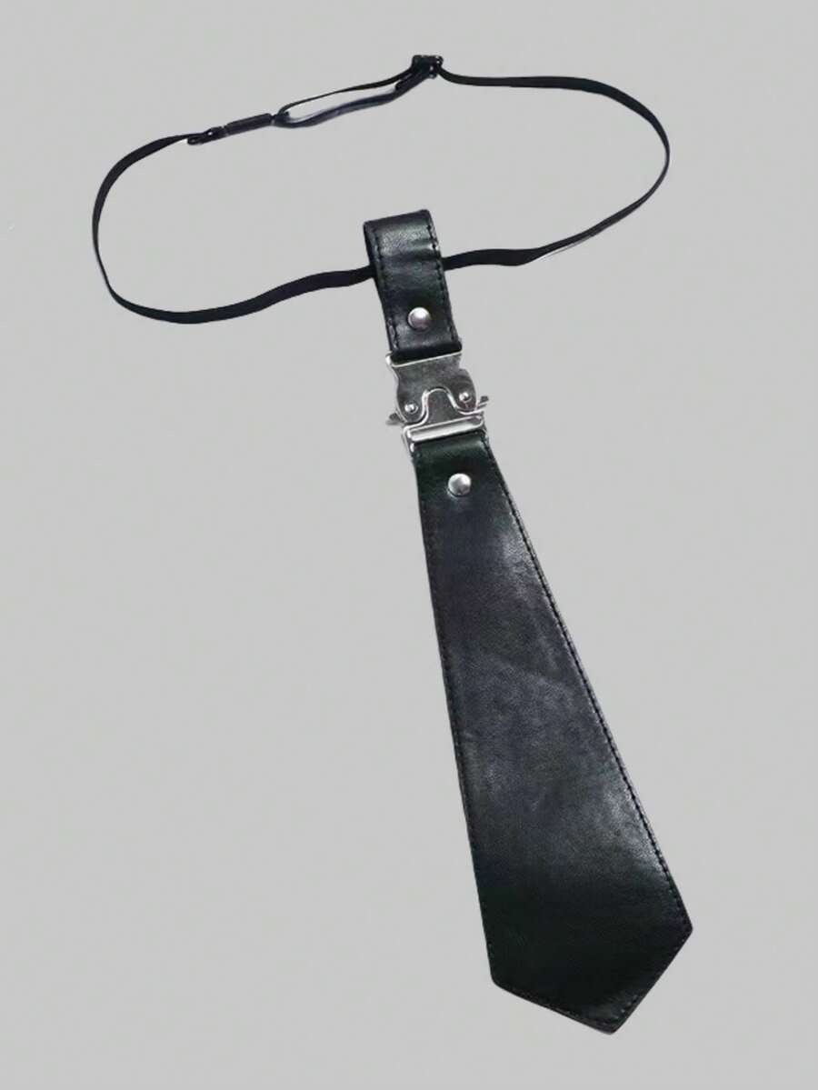 Grunge Punk 1 Stück Punk Stil Schwarze Leder Krawatte mit Metallschnalle für Frauen, geeignet für den täglichen Gebrauch, Schule
