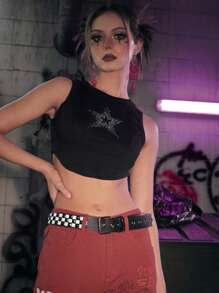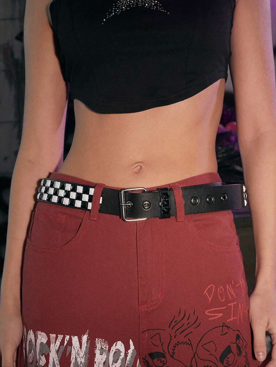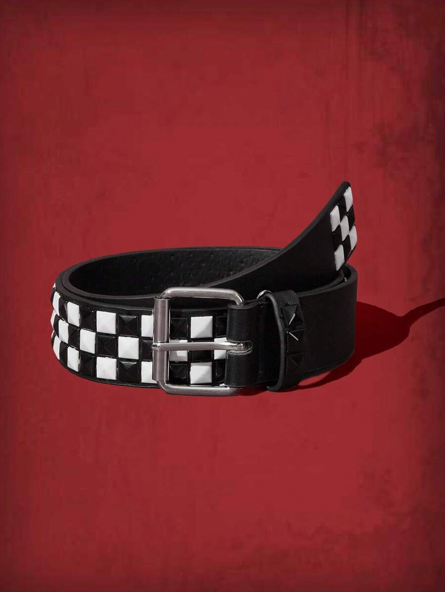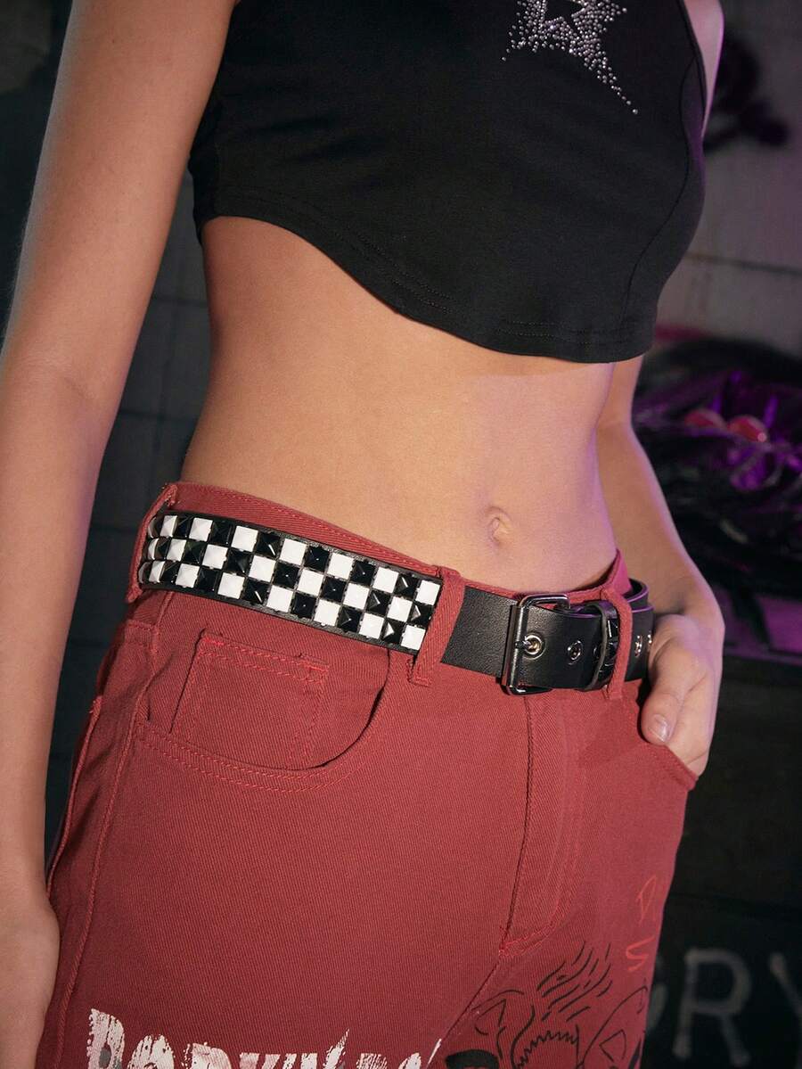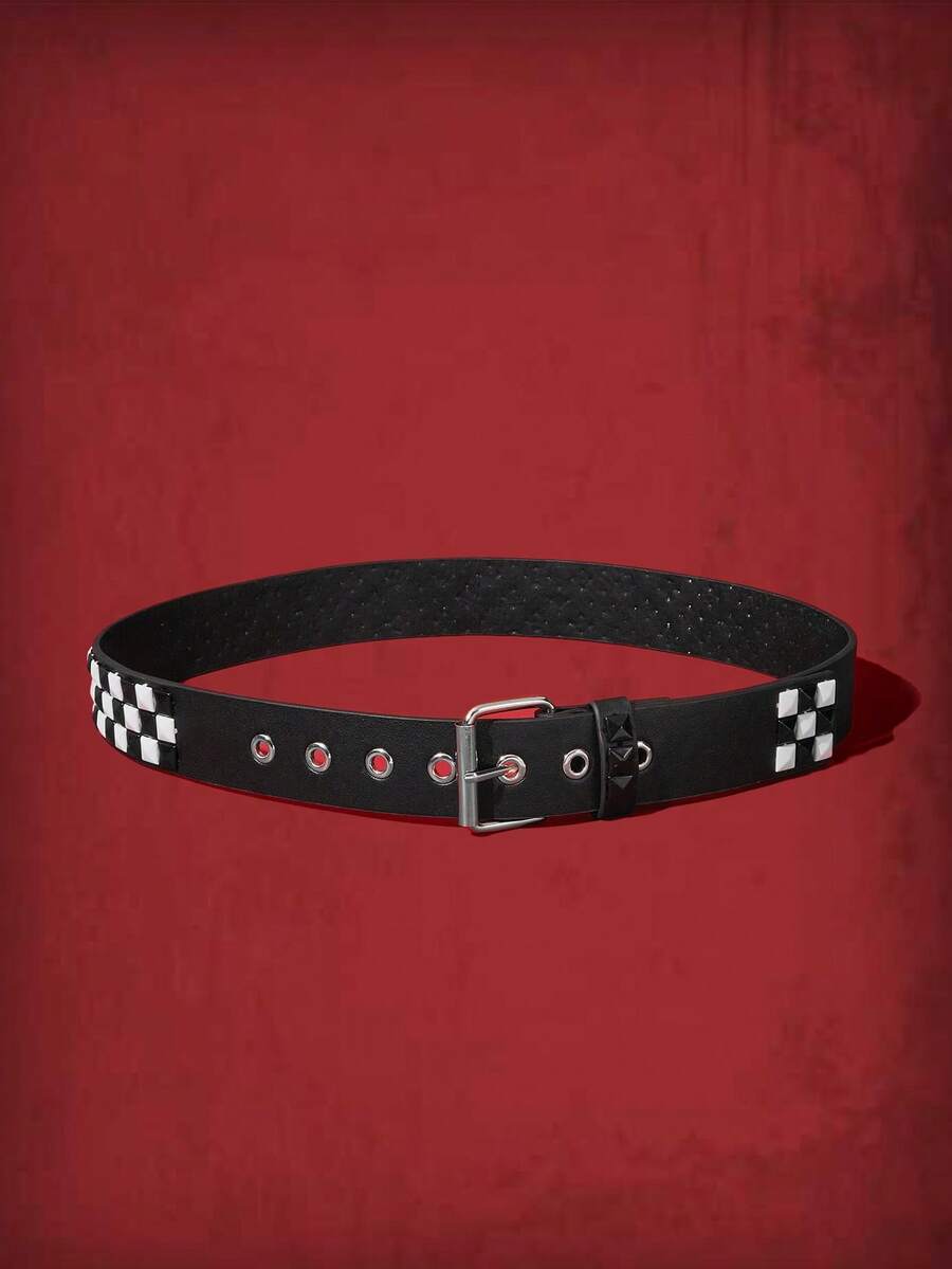 Grunge Punk Frauen 1 Stück Gürtel mit Kariert quadratischer Schnalle, Fashion