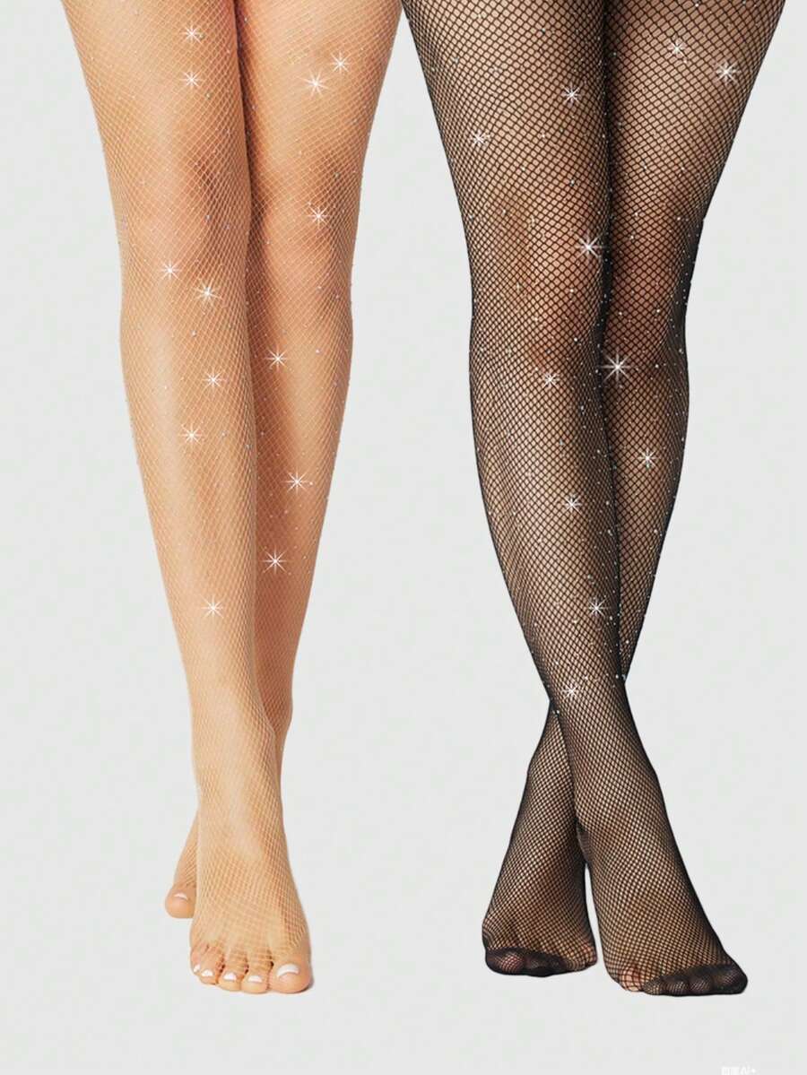 Grunge Punk 2 Paar sexy Strass-Netzstrumpfhosen, vielseitiges Grundlagen-Strumpfhosen-Set, dünne Strumpfhosen für alle Jahreszeiten