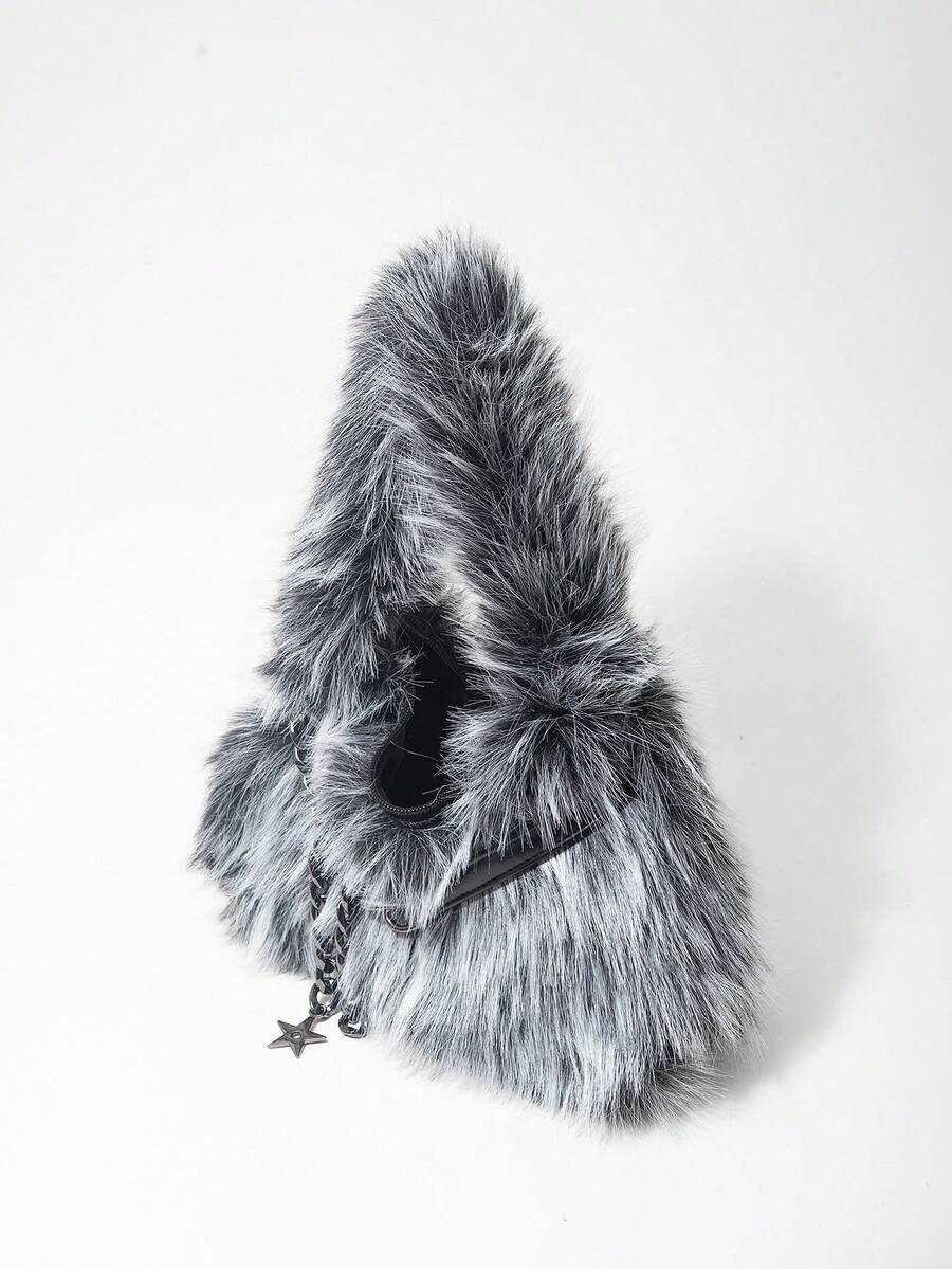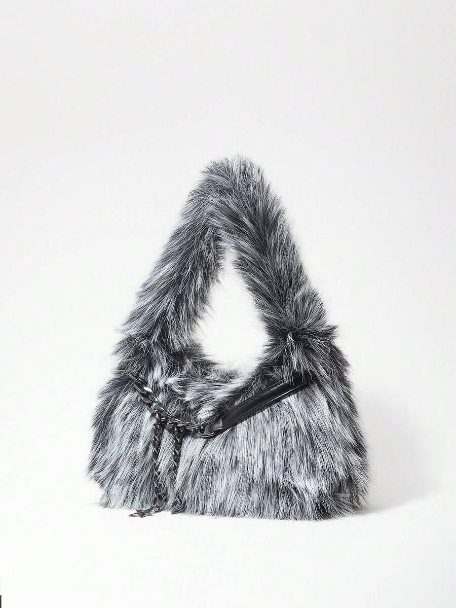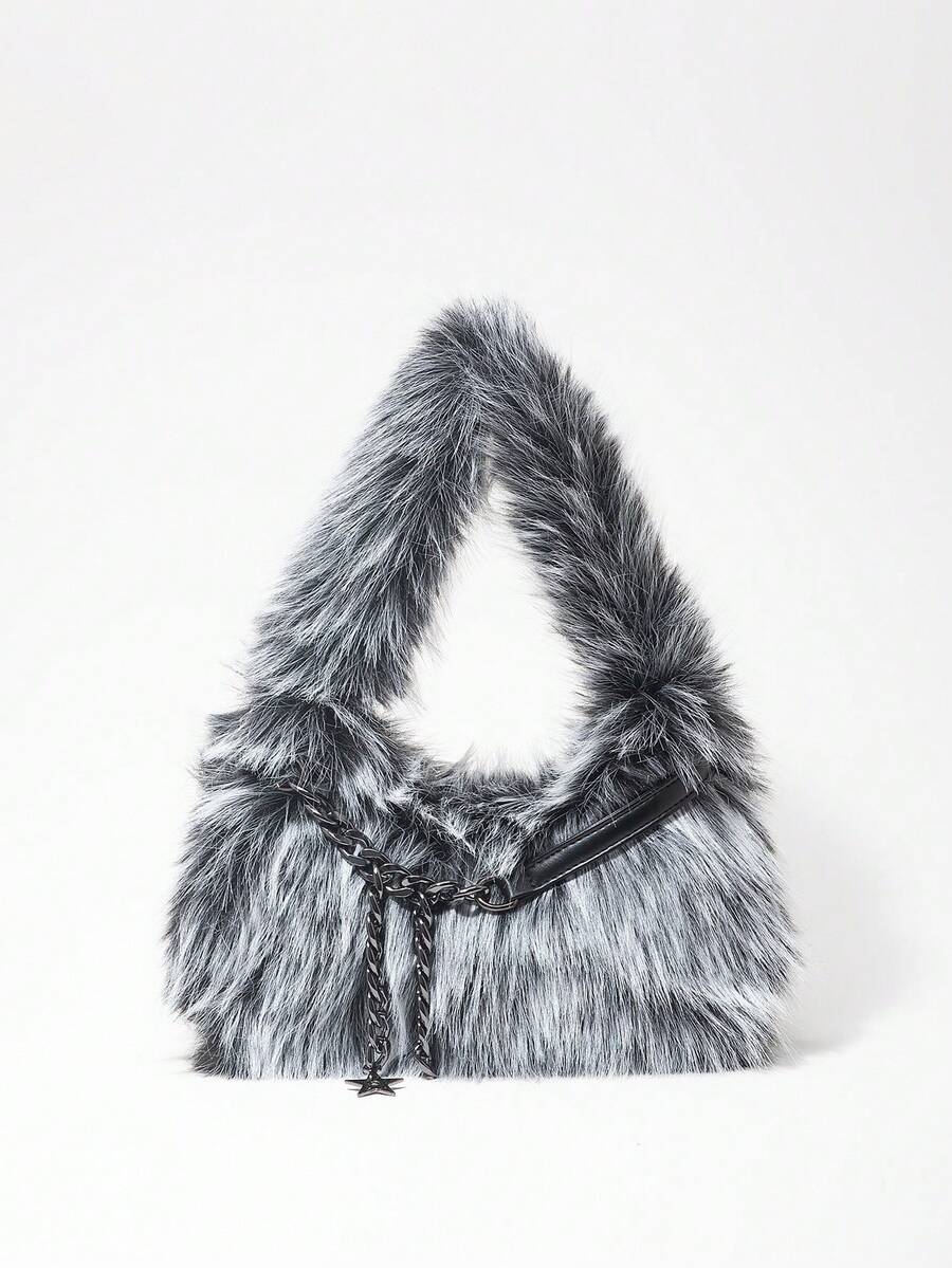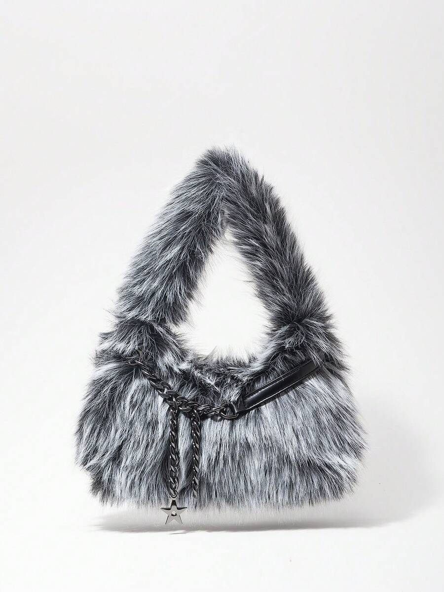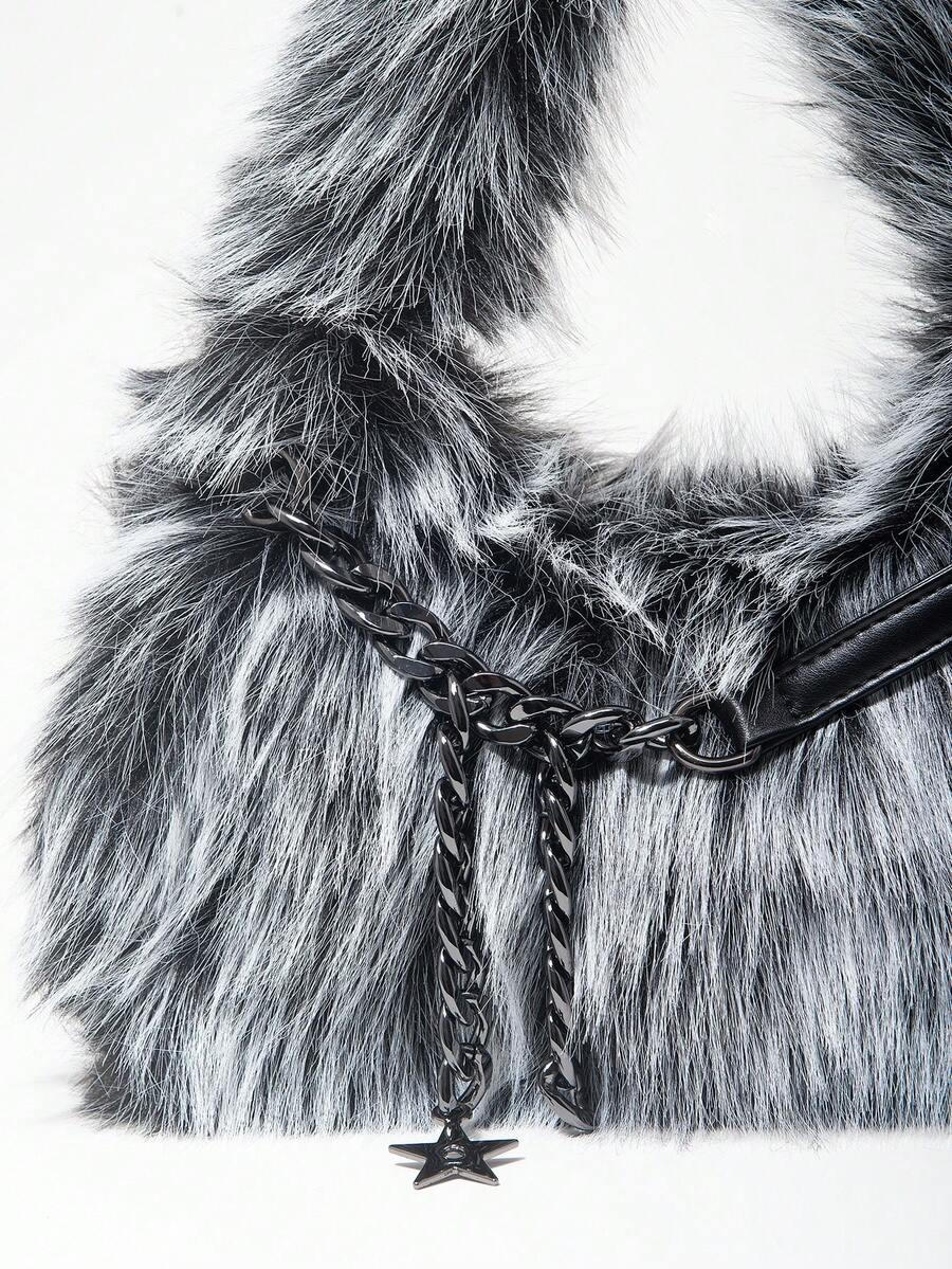 Grunge Punk 2000er Jahre Stil Damen Umhängetaschen, Punk Nieten Bikertaschen, Fellbeutel, Herbst & Winter Geldbörsen, Hobo Handtasche (zufälliges Muster)