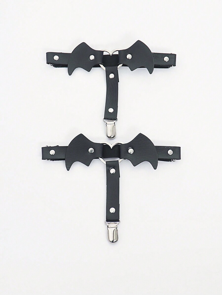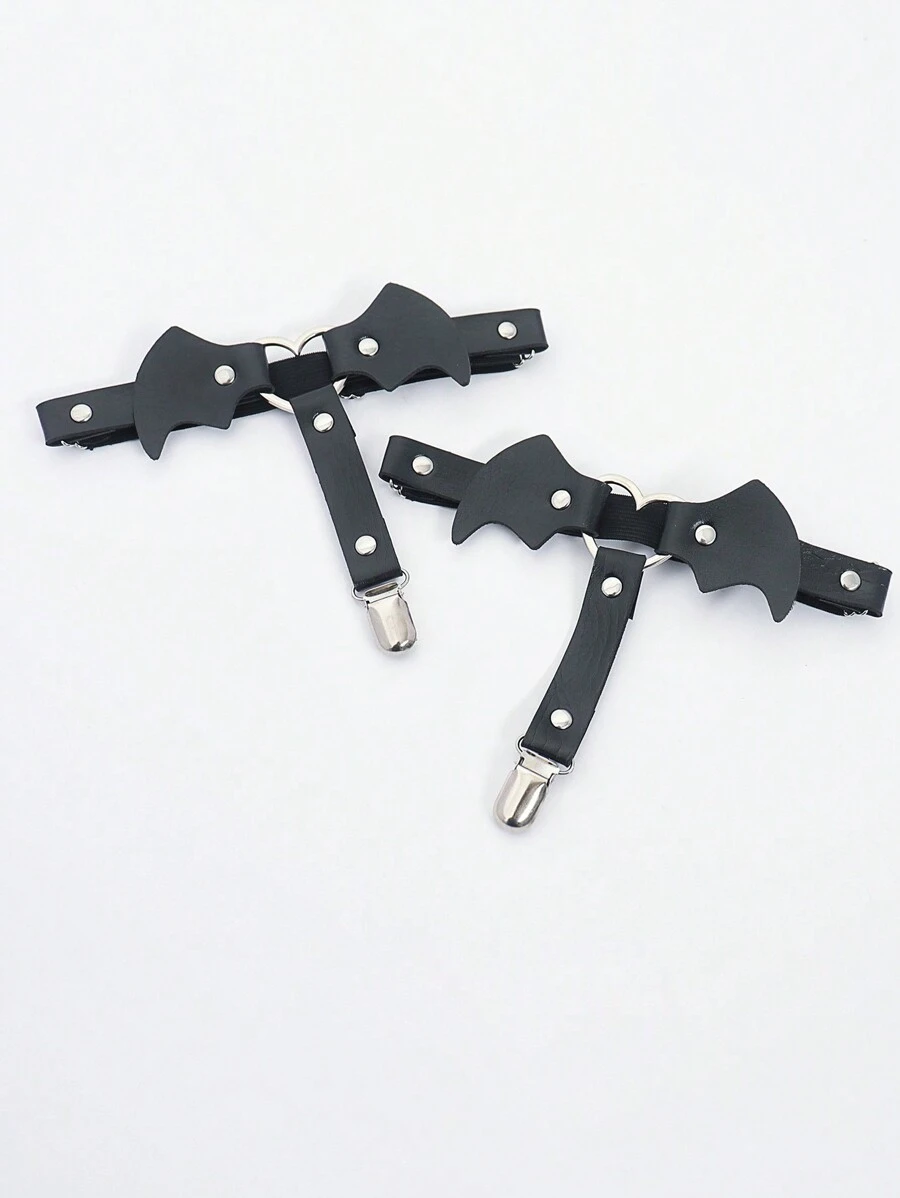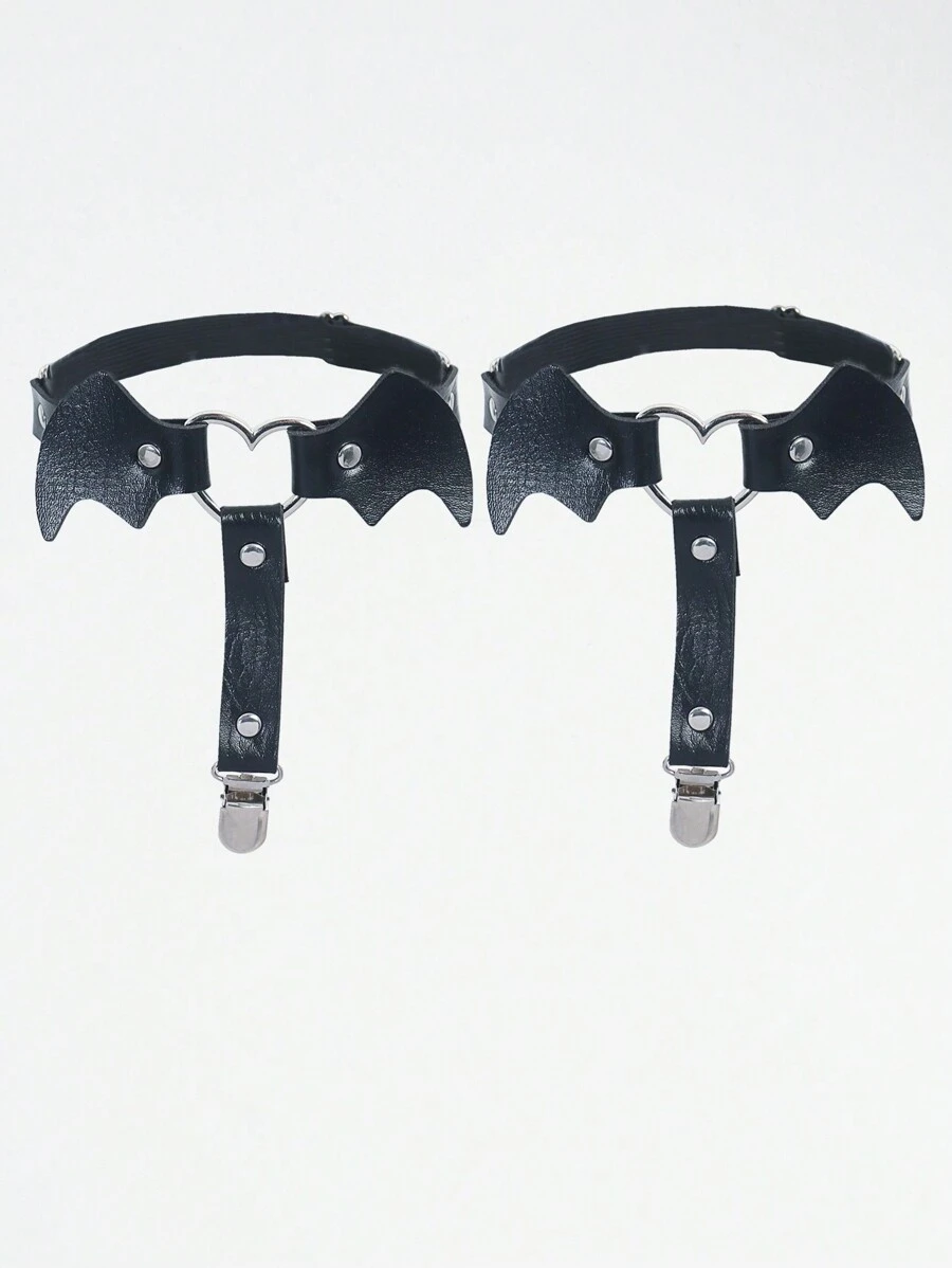 Grunge Punk 2 Stücke Schwarze Herz Verbundene Schnalle Design Modische Sockenhalter