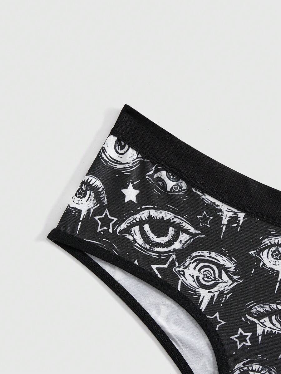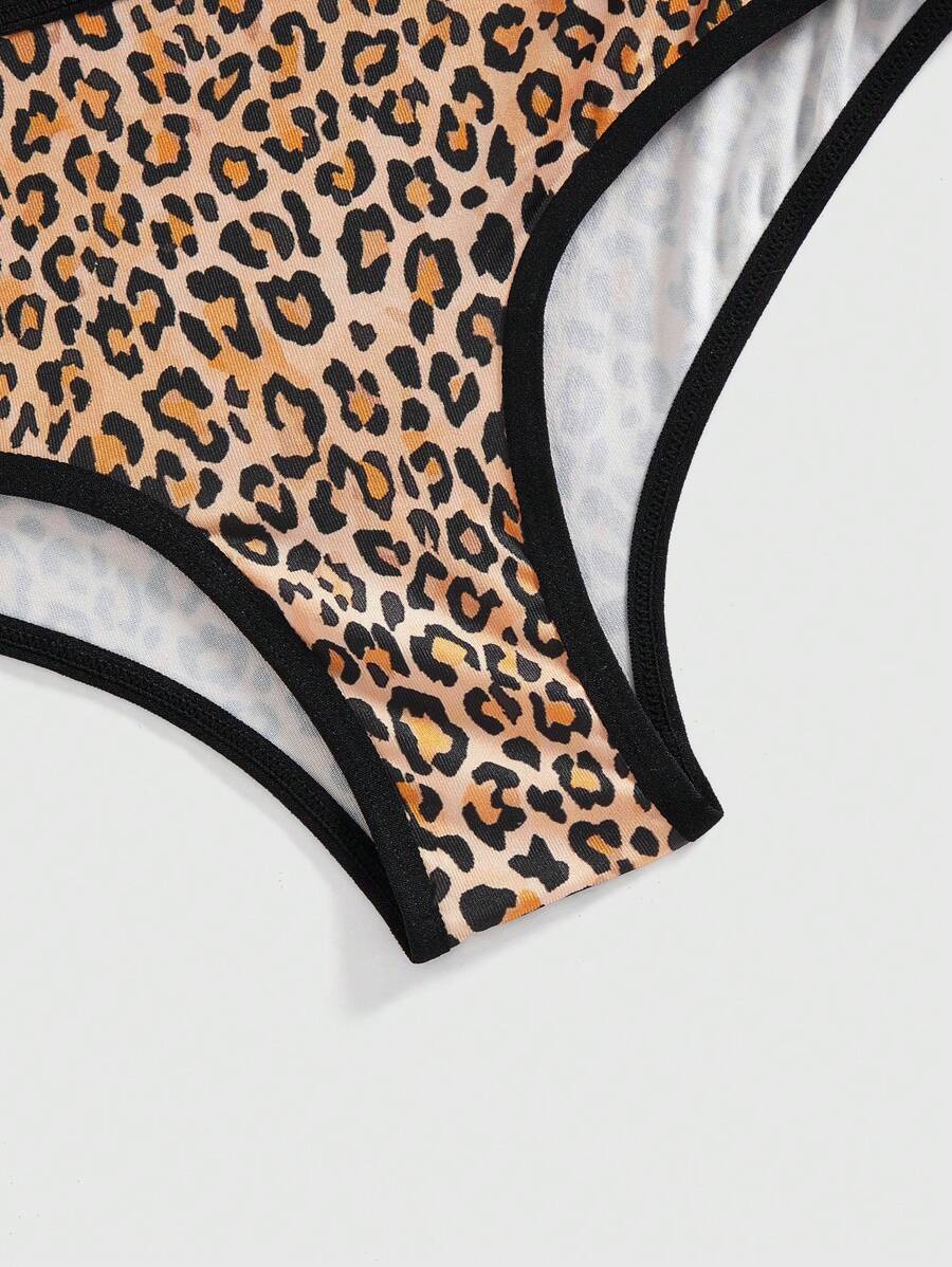 Grunge Punk 3 Stücke/Set Punk Rock Leopardenmuster Schwarzweiß Portrait Frauen Tanga Unterwäsche