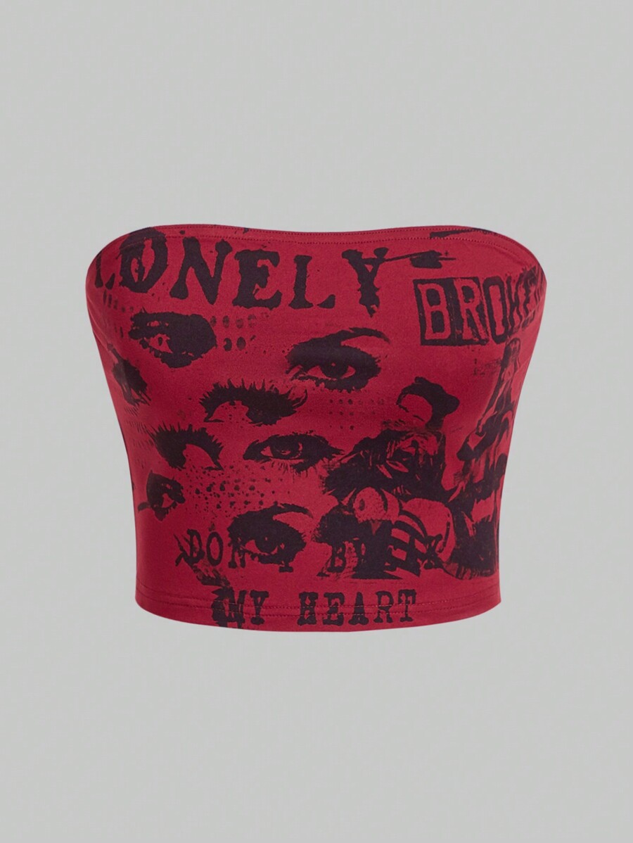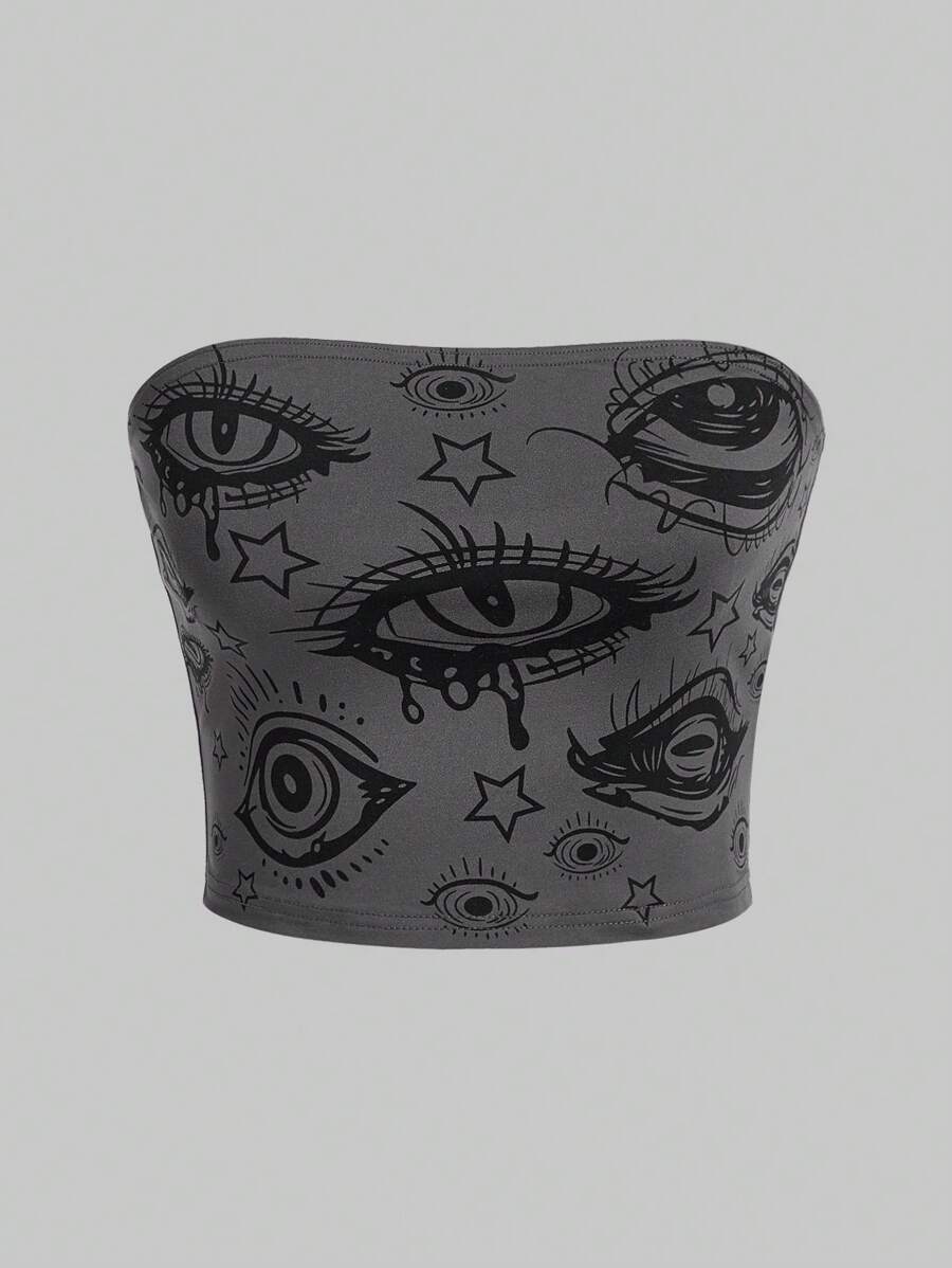 Grunge Punk 3 Stücke Y2k Millennium Auge & Gesicht Gedrucktes, Enges Bustier Set Für Frauen