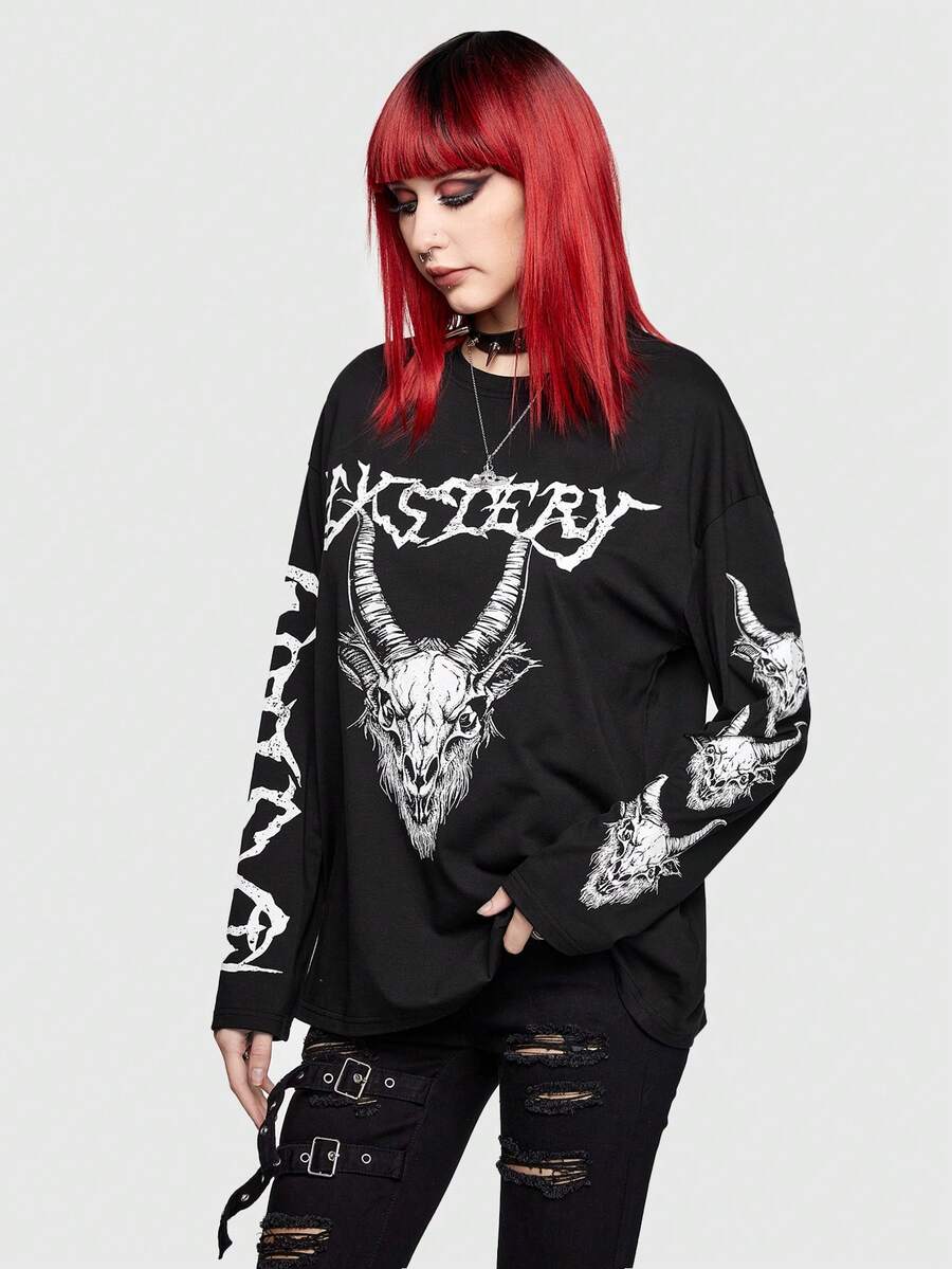 Grunge Punk Alphabet Ziegen-graphik Drop-shoulder T-shirt