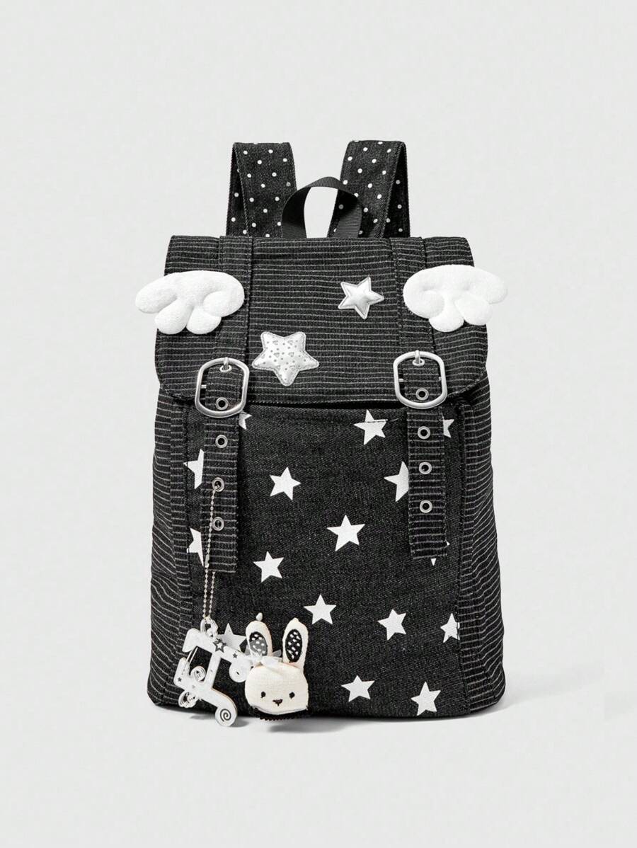 Grunge Punk Rucksack mit Musik-Noten- und Flügel-Design für die Rückkehr zur Schule