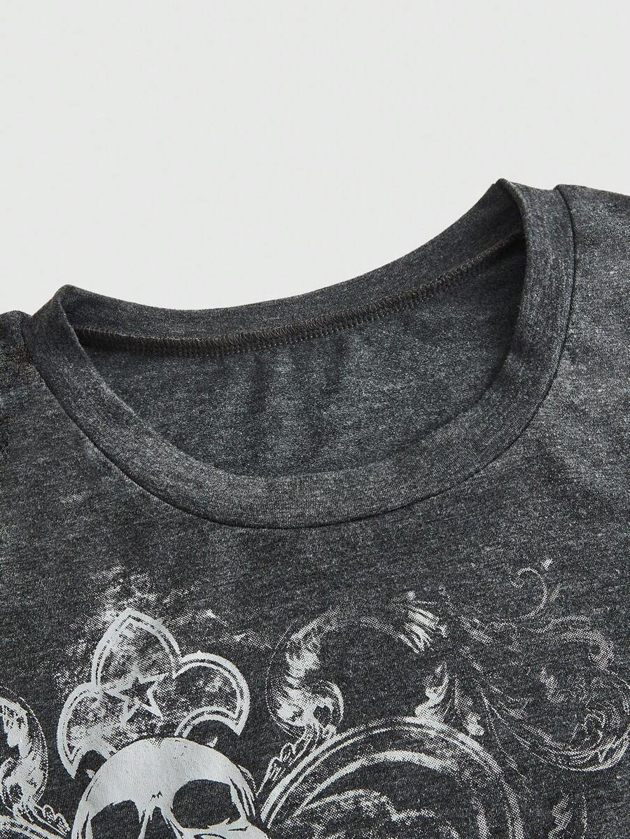 Grunge Punk Lässiges Stretchy Slim-Fit Floral Grey Skull & Vine Vintage Distressed Muster Damen Große Größen Crop T-Shirt
