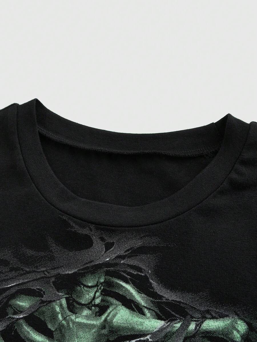 Grunge Punk Dunkel Punk Dystopisches Skelett Destroyed Muster Slim Fit Damen T-Shirt, Vielseitig
