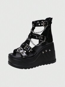 Grunge Punk Europäischer und amerikanischer Stil Nieten Plateau Keilabsatz Peep-Zehen High Heels, Super High Heels, Sexy britische Stil Damen Sommerstiefel, dicke Römer Sandalen