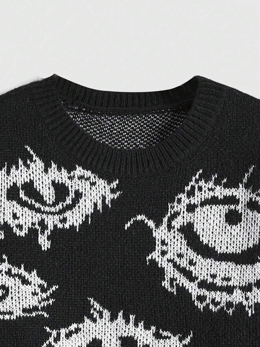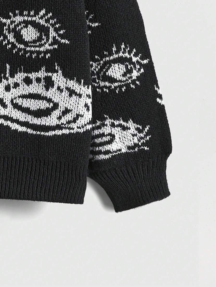 Grunge Punk Pullover mit Auge Muster, Drop Shoulder