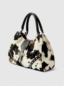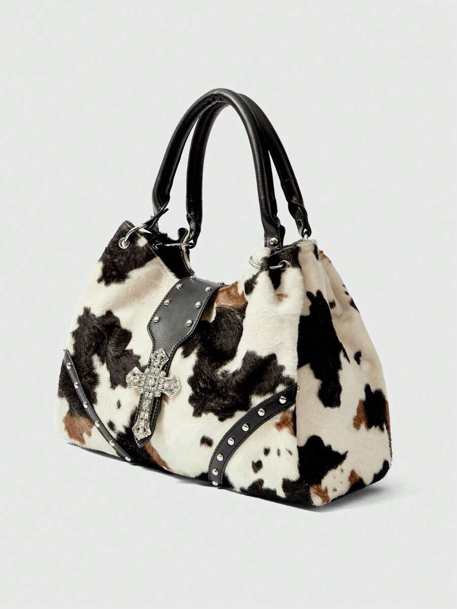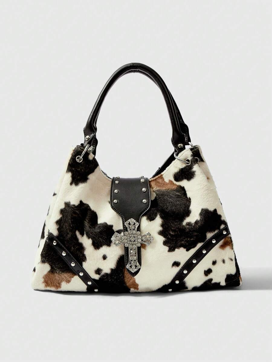 Grunge Punk Fashionable Leopard Print Casual Large Capacity Tote Shoulder Bag For Women, New Fall Winter Cheetah Print Purse For Women