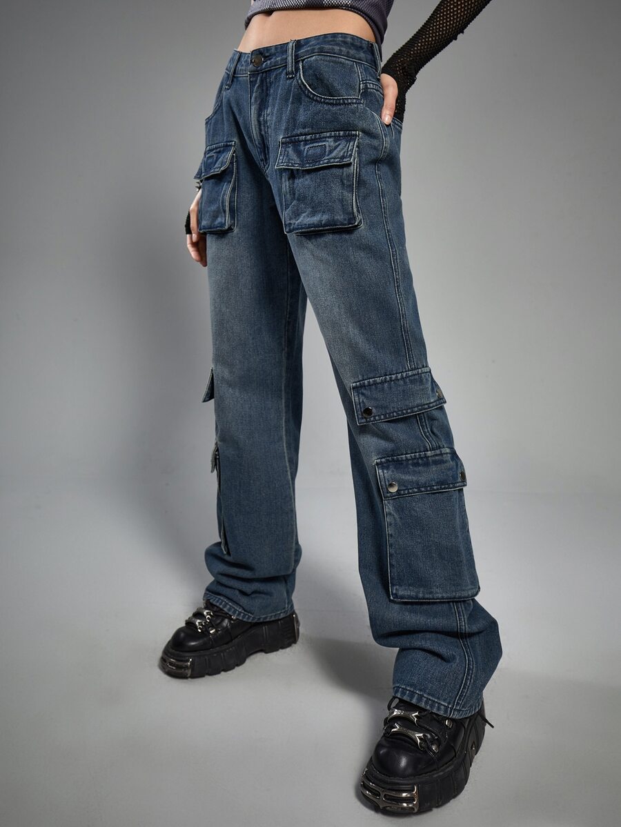 Grunge Punk Cargo Jeans mit Pattentasche