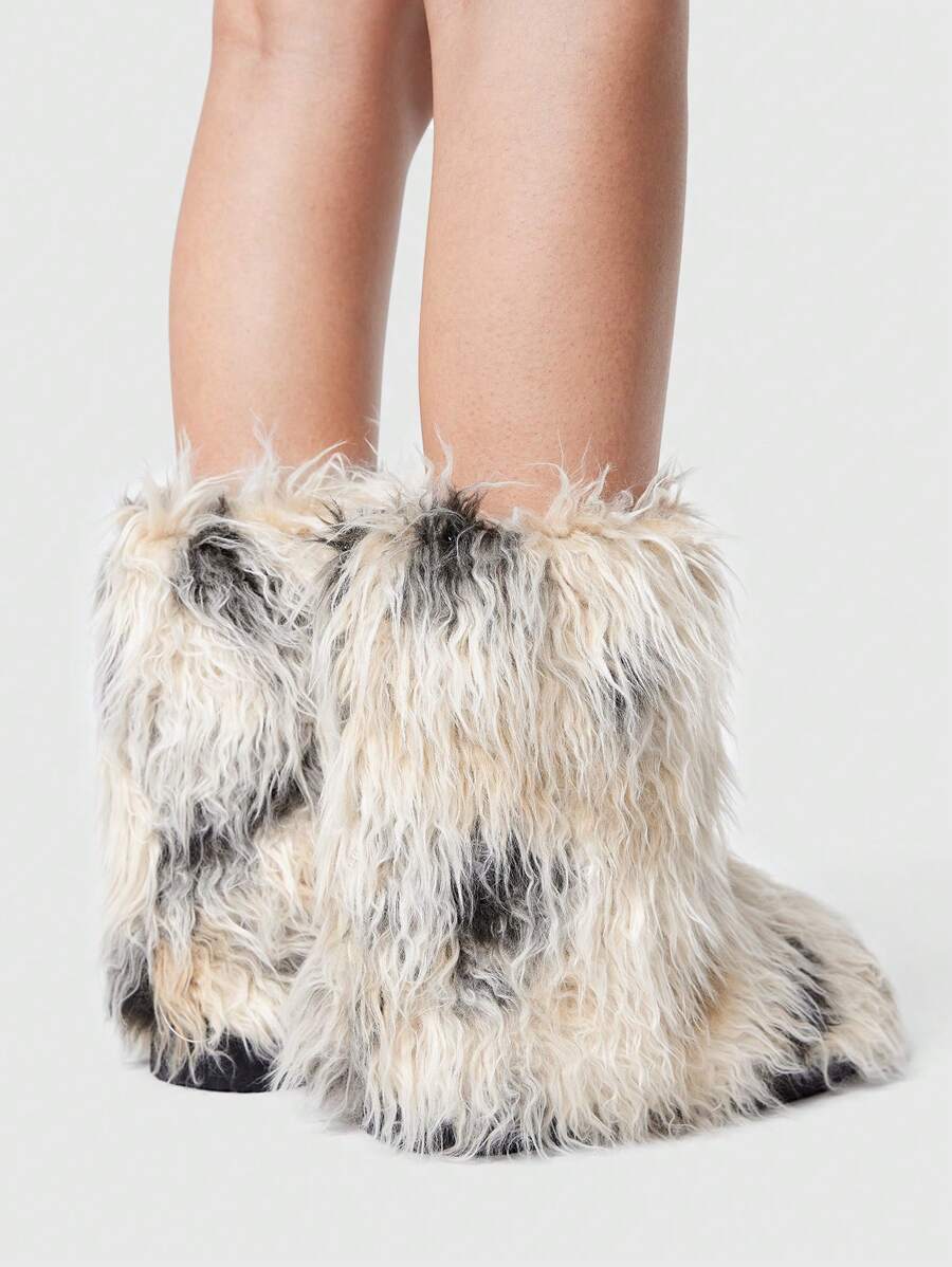 Grunge Punk Dicke, flauschige Schneestiefel, Damen, Neuestes Modell 2024, warm gefüttert, flach, rutschfest, kurzer Schaft Winterschnee Stiefel für Weihnachts- und Neujahrsstimmung Herbst und Winter