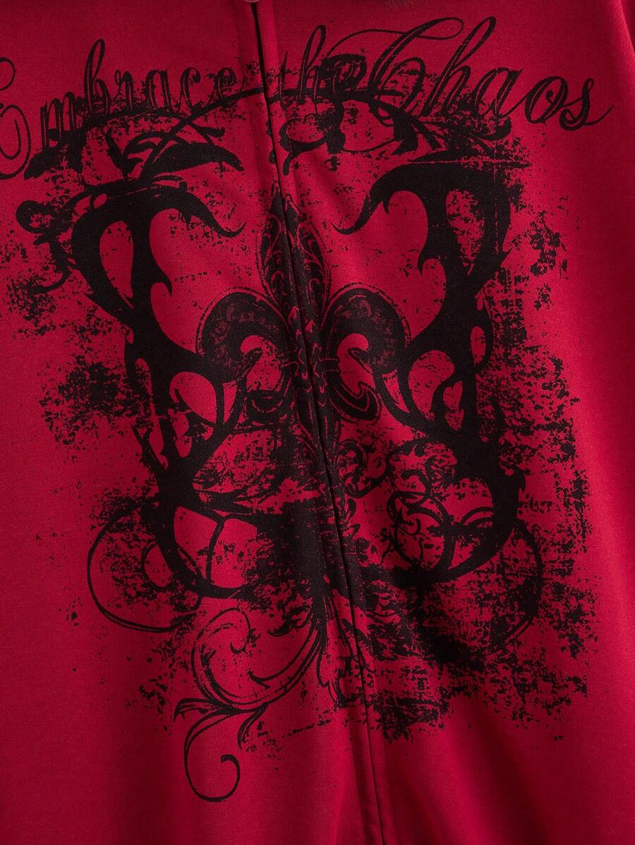 Grunge Punk Gothische Punk Reben Muster Kapuzen Locker sitzende Langarm Sweatshirt mit flauschigem Kragen für Damen