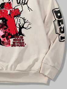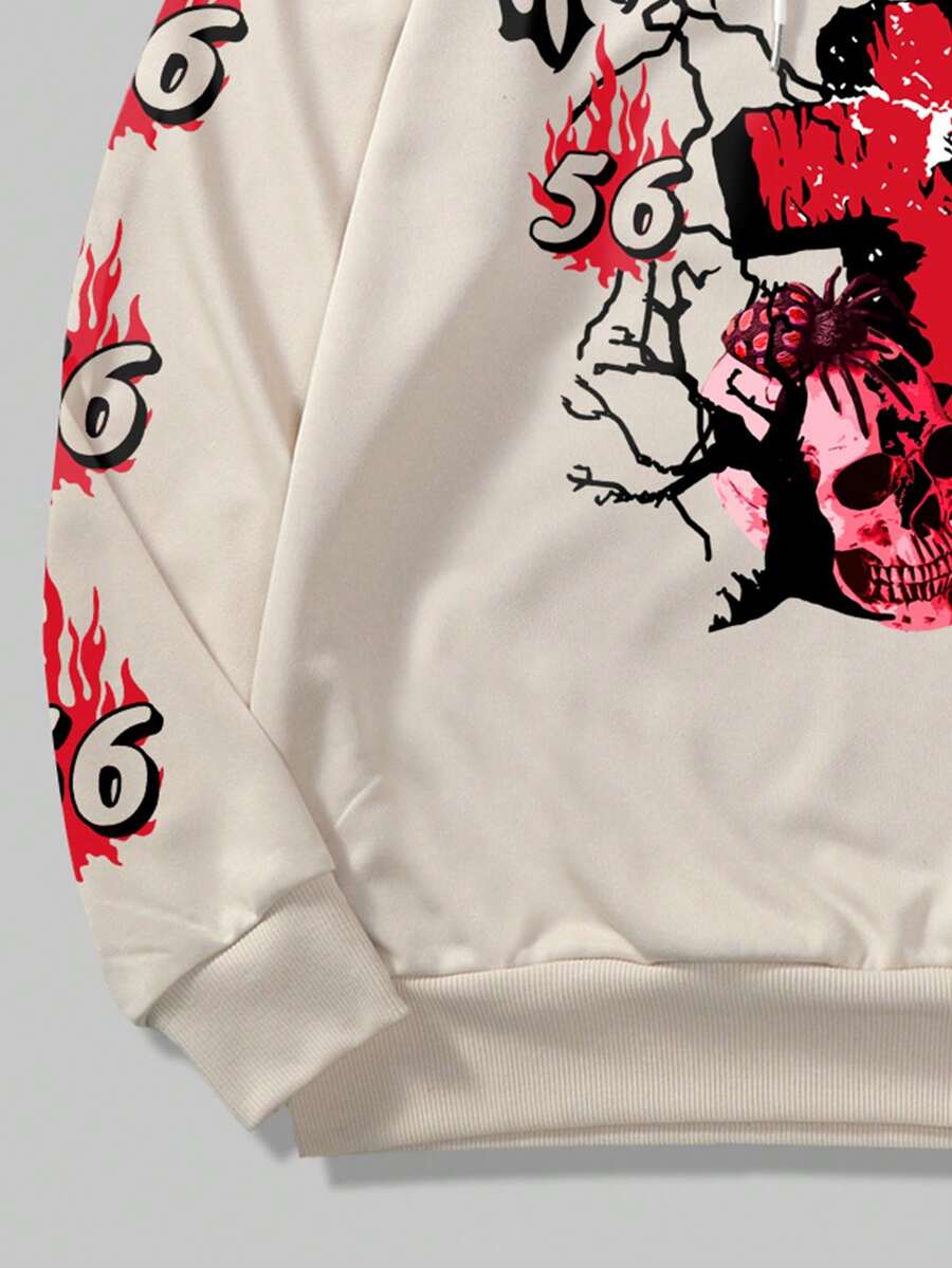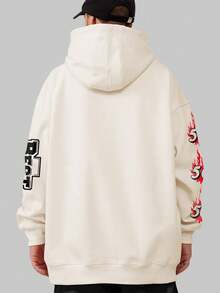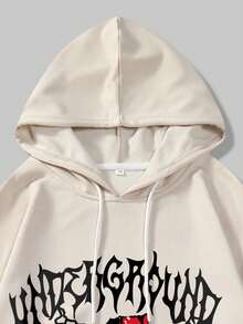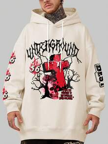 Grunge Punk Männer Hoodie mit Buchstabe & Cartoon Grafik, Tunnelzug,