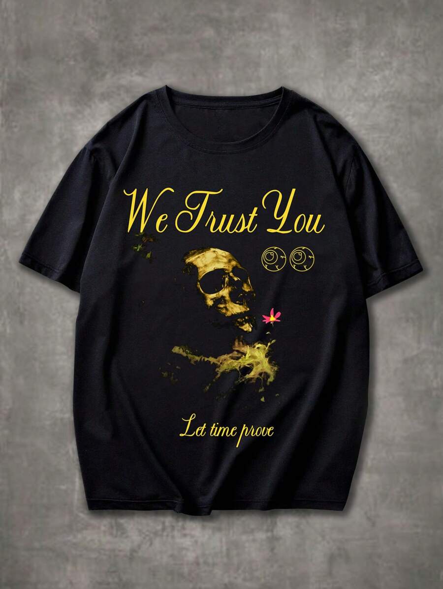 Grunge Punk Männer T-Shirt mit Skelett Grafik,