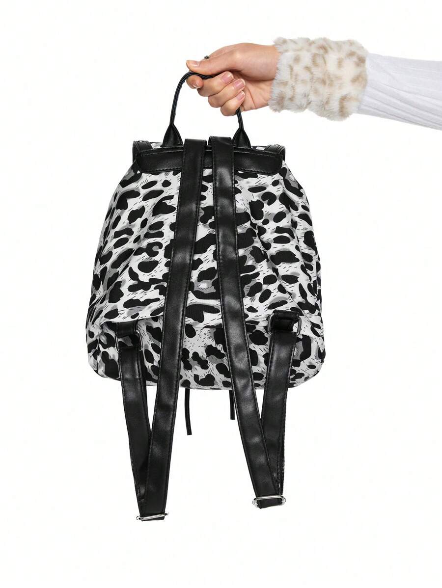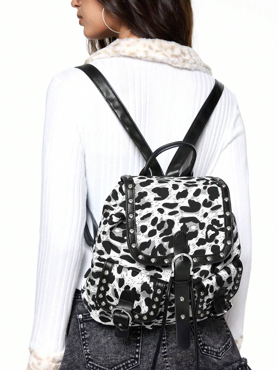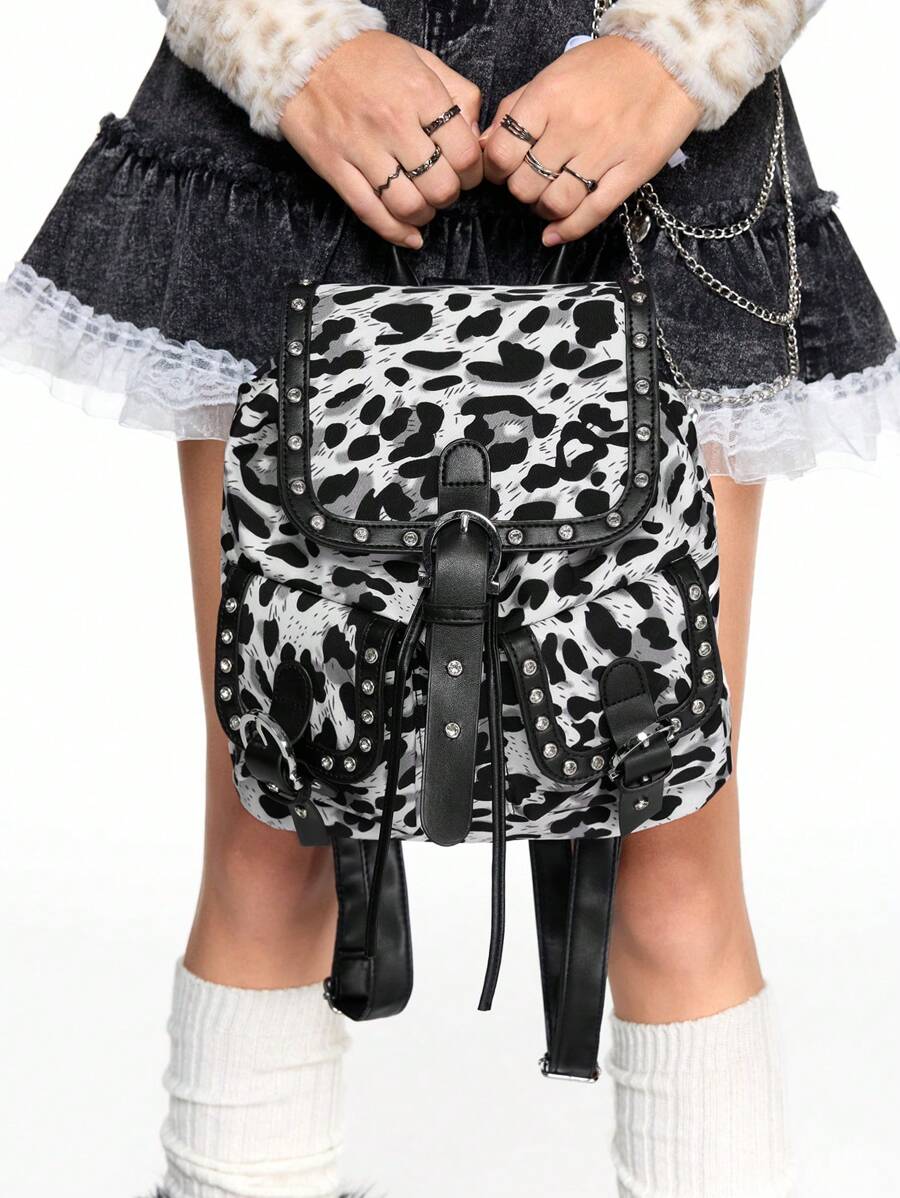 Grunge Punk Großer schwarzer & weißer Leoparden Muster Rucksack mit Nieten verziert - ideal für Schule und Alltagsgebrauch