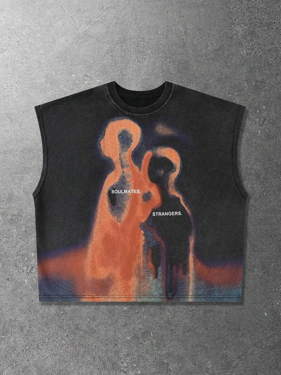 Grunge Punk Herren lässiges, modisches, bedrucktes Crop Fit Tank Top im Used-Look, Sommer