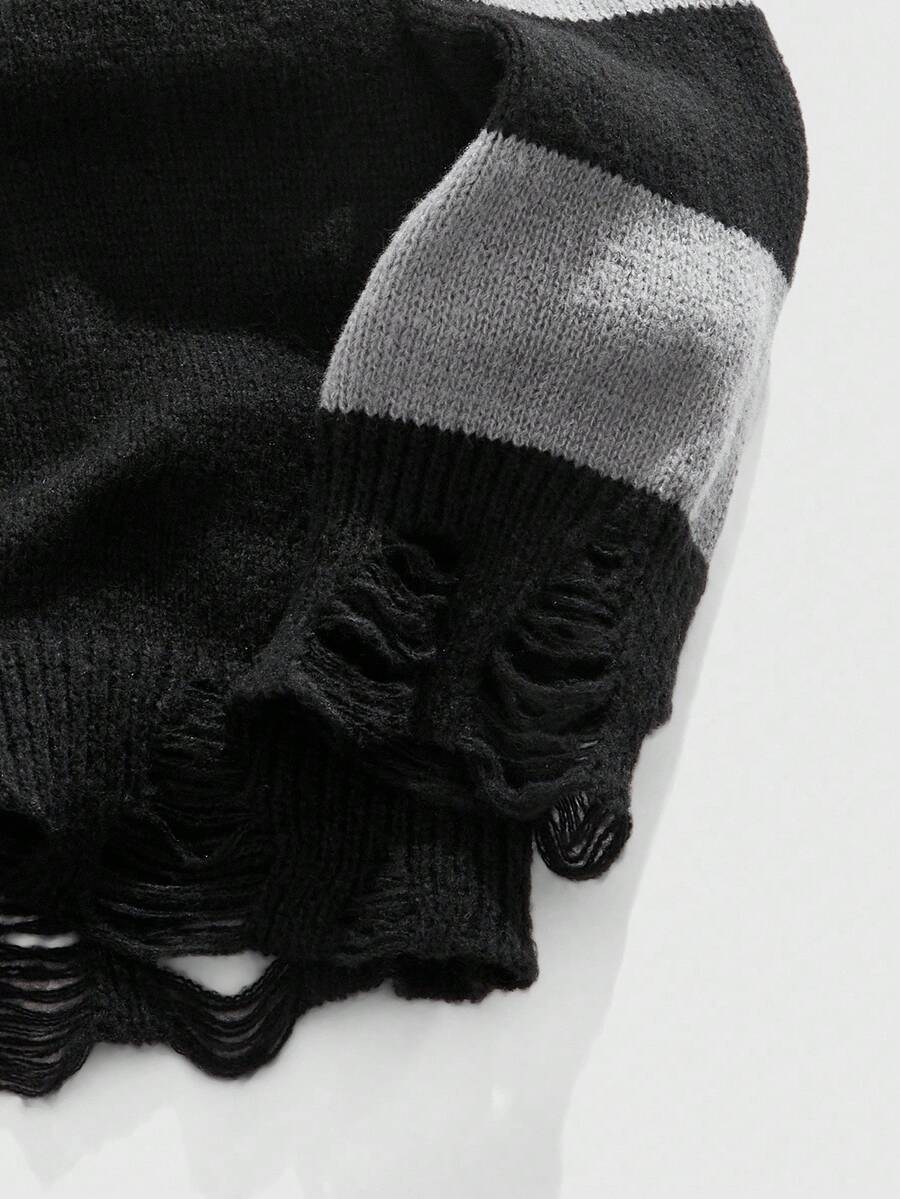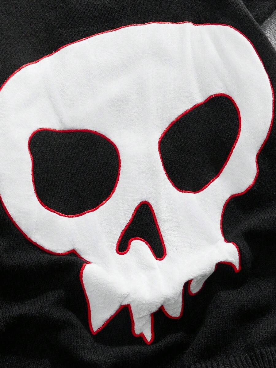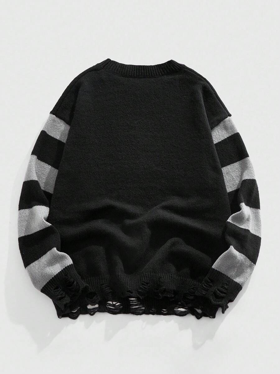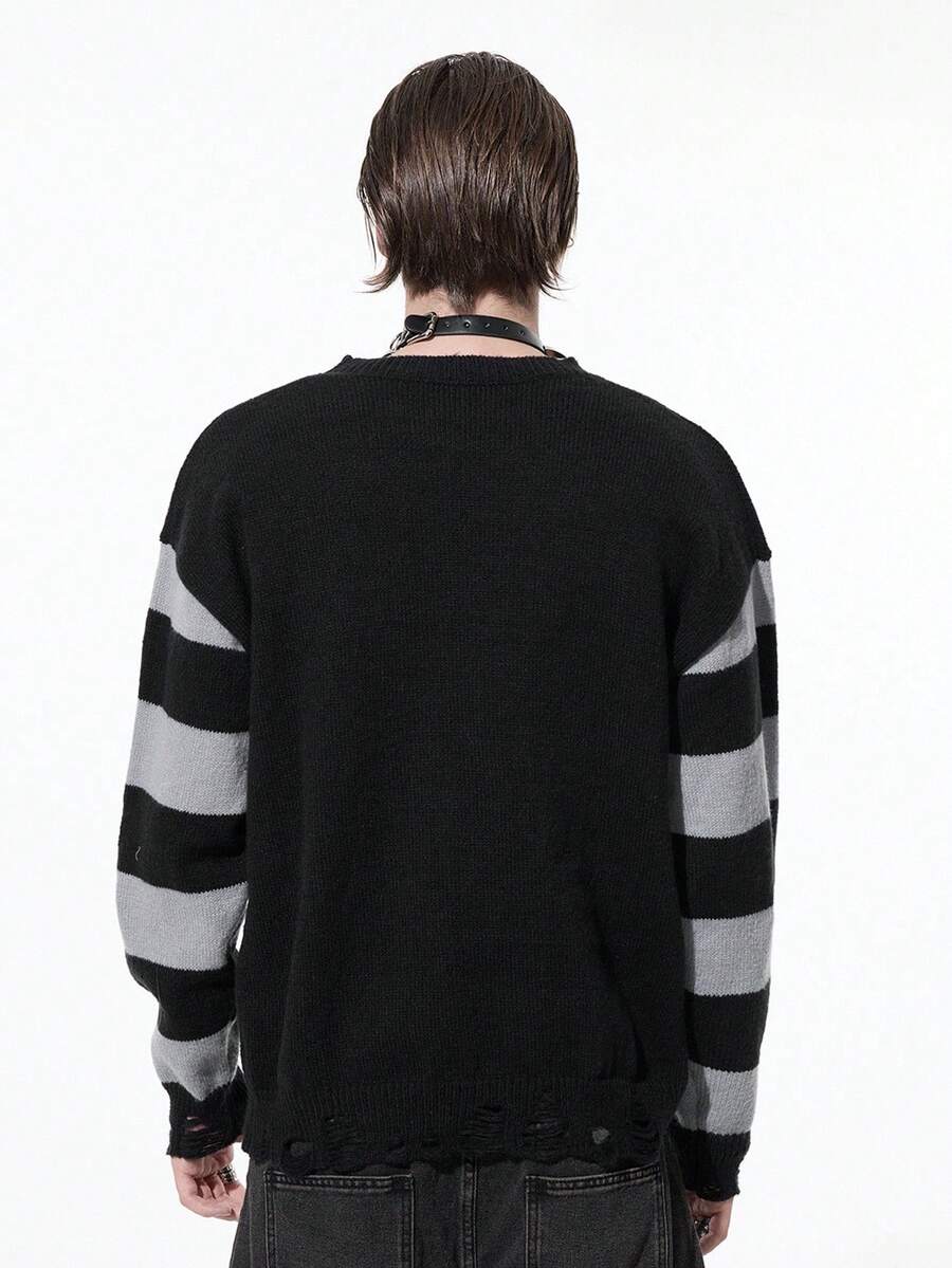 Grunge Punk Herren lässiger, locker sitzender Pullover mit Totenkopf- und Streifenmuster, Rundhalsausschnitt, Drop-Shoulder und Langarm, Herbst