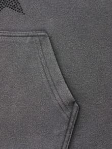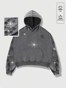 Grunge Punk Herren Hoodie Sweatshirt mit abgenutztem Strass-Stern-Grafik, locker geschnittener Crop-Fit, Herbst