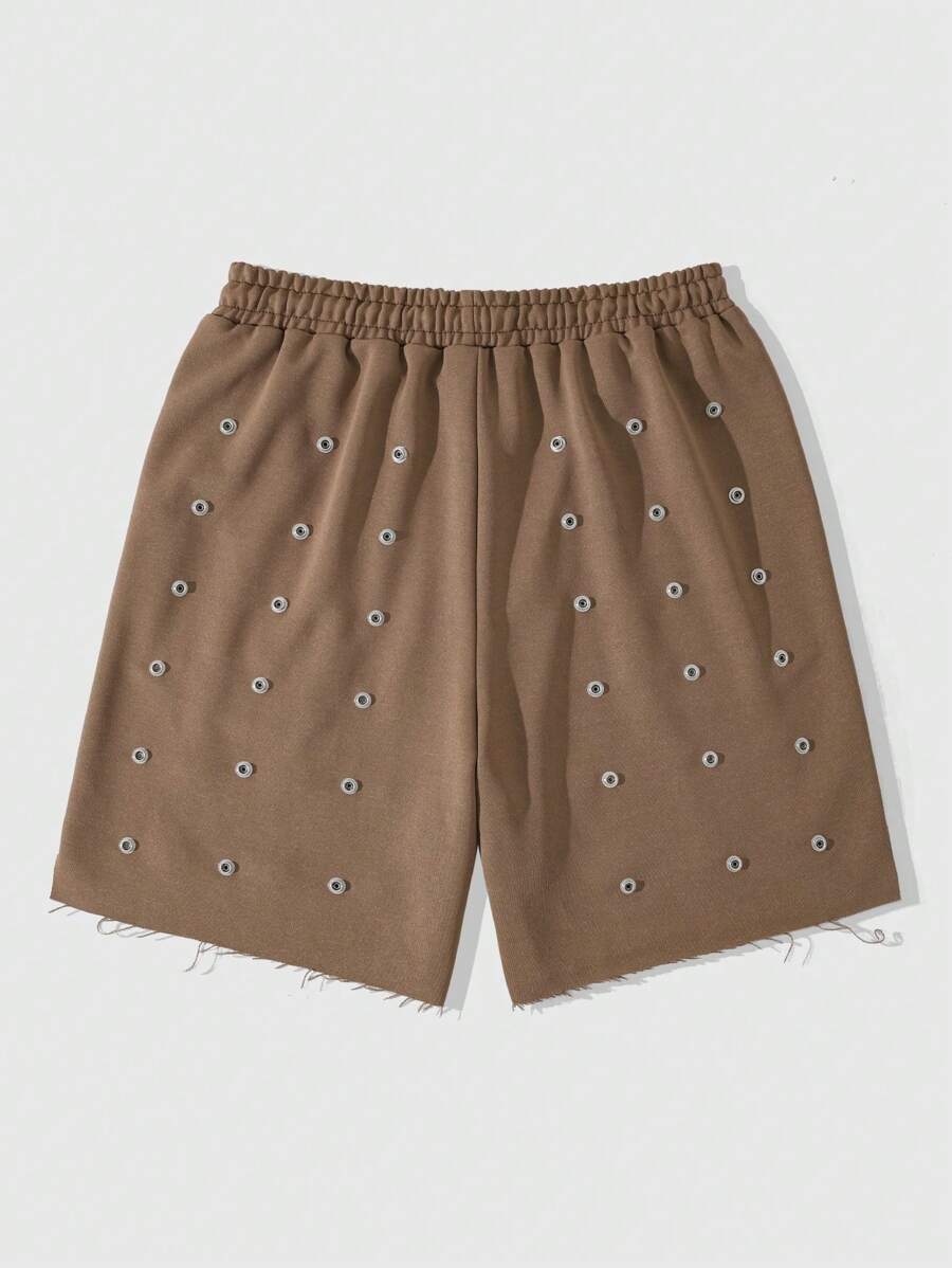 Grunge Punk Herren Shorts mit Kordelzug Taille, locker geschnitten, mit Metall Nieten