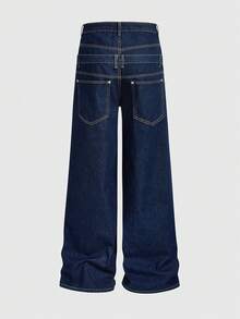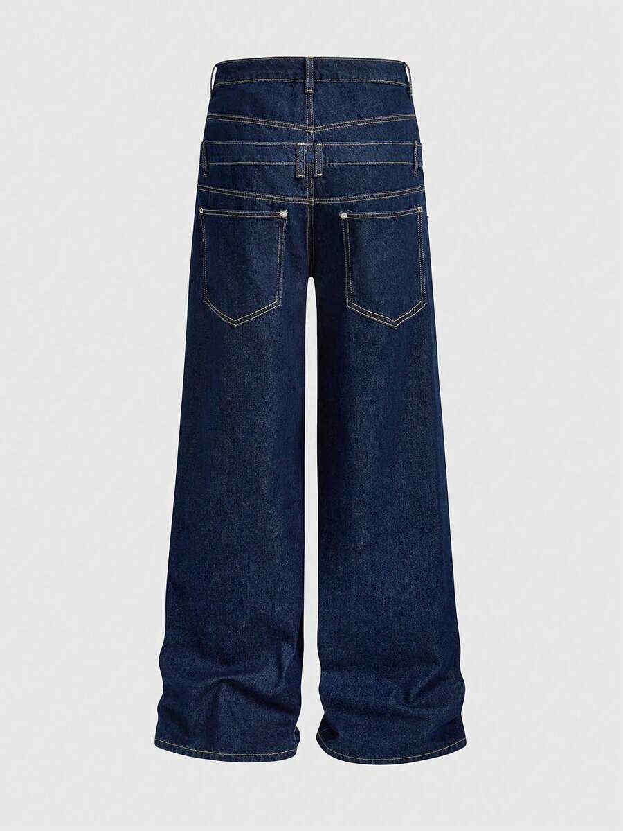 Grunge Punk Herren Loose Fit Weite Beine Jeans mit doppelter Taillenbandeinlage