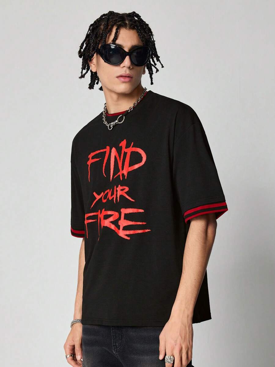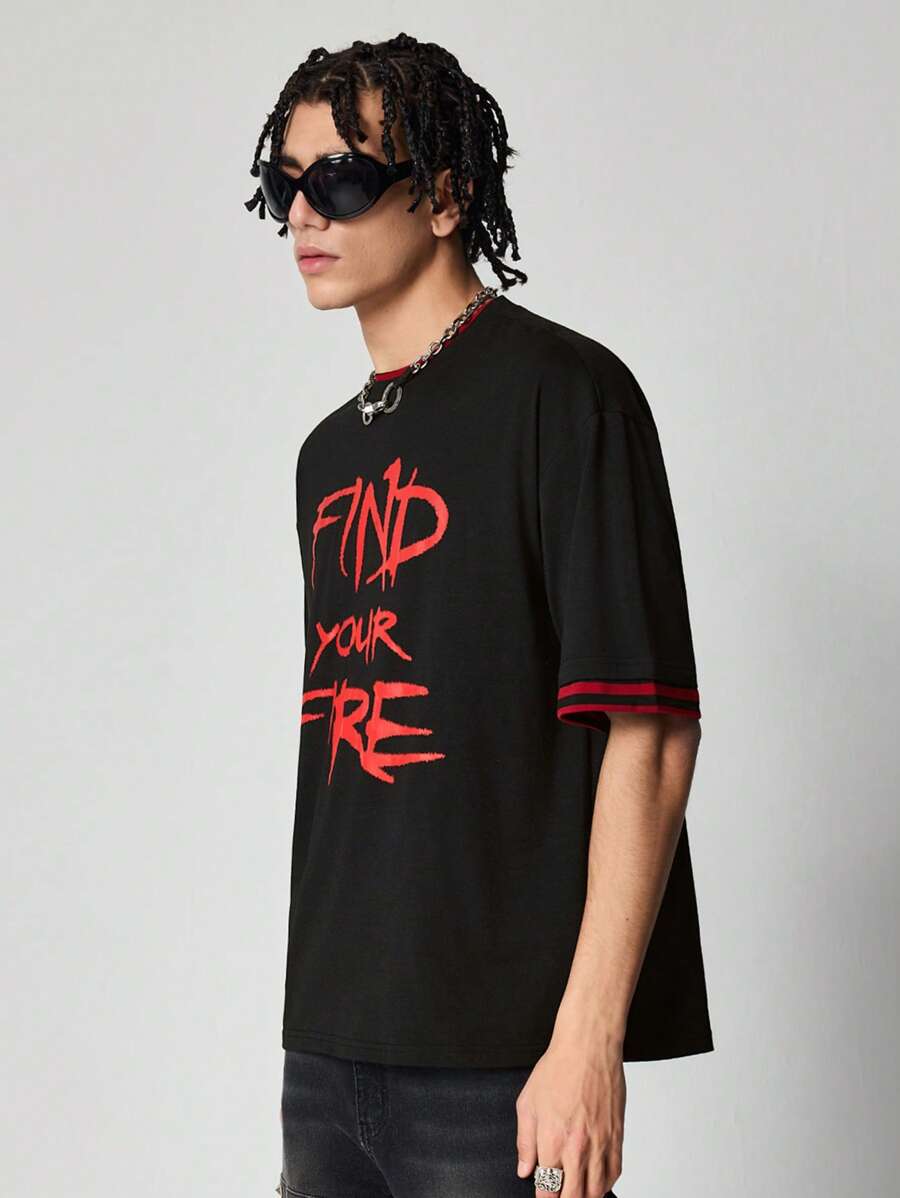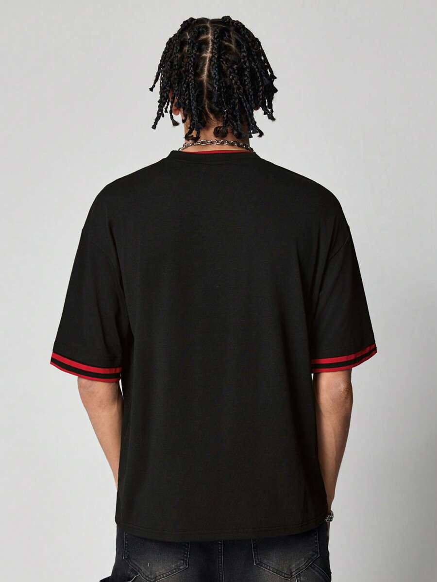 Grunge Punk Herren Rundhals Kurzarm T-Shirt mit Kontrastbesatz und Buchstaben-Muster, einfaches Lässig Design