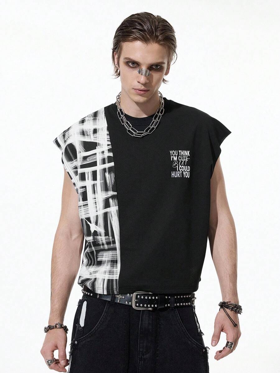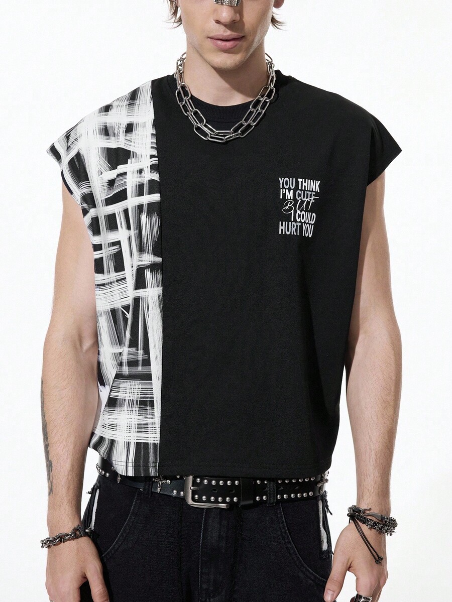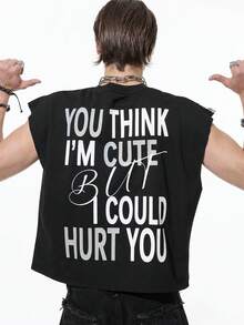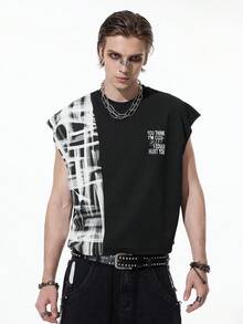 Grunge Punk Herren Slogan Muster Loose Fit Lässig Ärmellos Tank Top