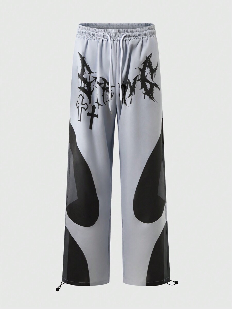Street Life Herren Einfarbige Patchwork Vorderseite Krawatte Muster Lässige Lange Hose, Alltäglicher Trage