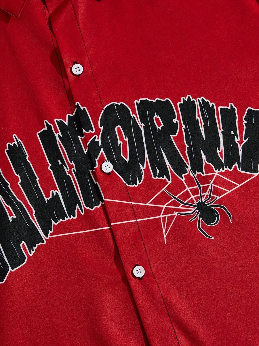 Grunge Punk Herren Spinnen & Buchstaben Muster Freizeit Kurzarm Hemd