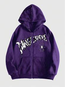Grunge Punk Herren Langarm Hoodie mit Spinnen Muster für Halloween, Schule
