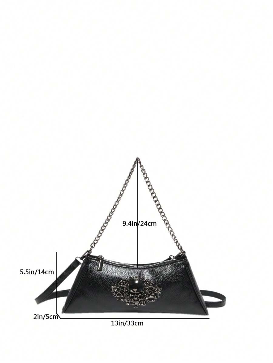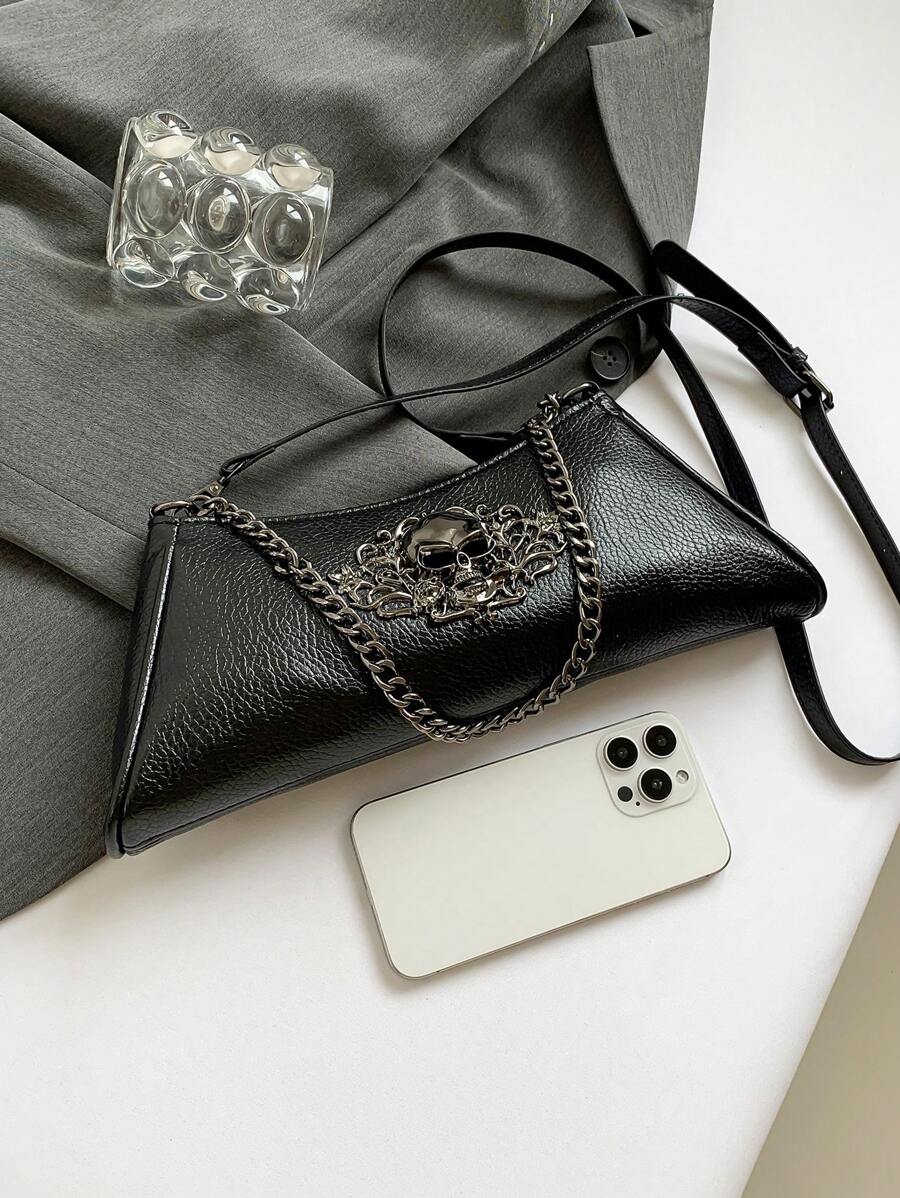 Grunge Punk Neue schwarze Gothic Umhängetasche im Punk-Stil mit Totenkopf-Motiv, Kette und Kreuz-Design für Damen
