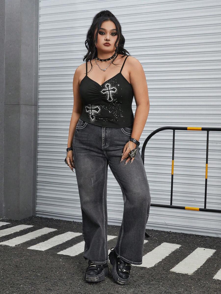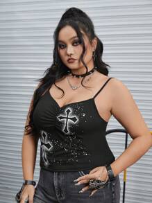 Grunge Punk Cami Top mit Kreuz, Muster,
