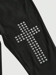 Grunge Punk Punk-Stil Kreuz Metall Applikation Damen Leggings