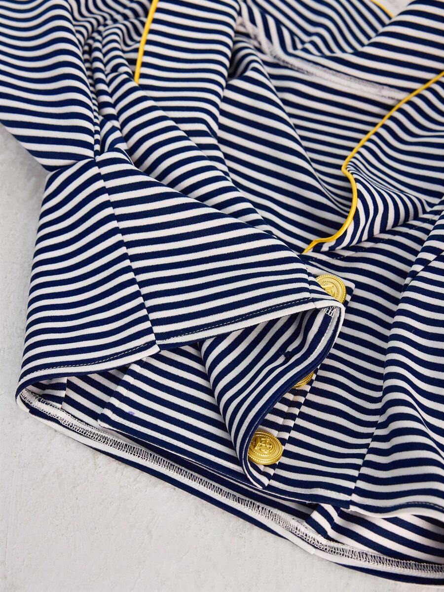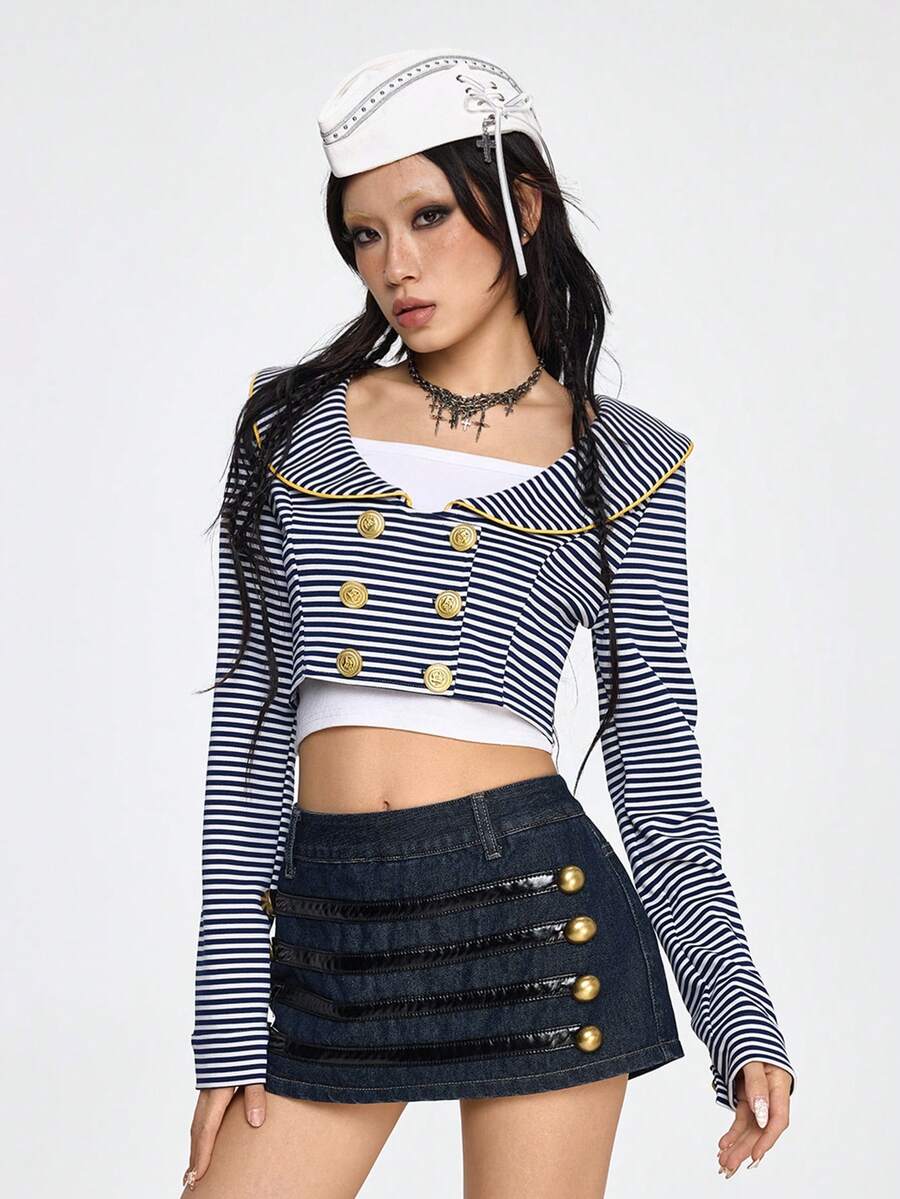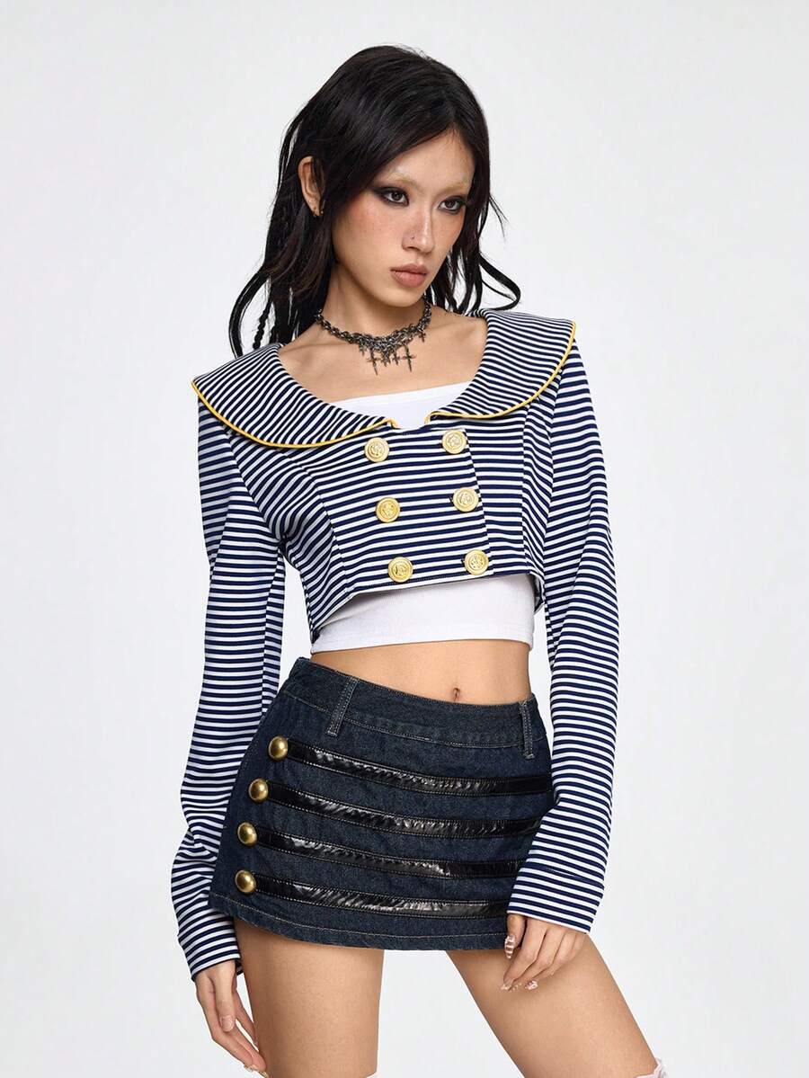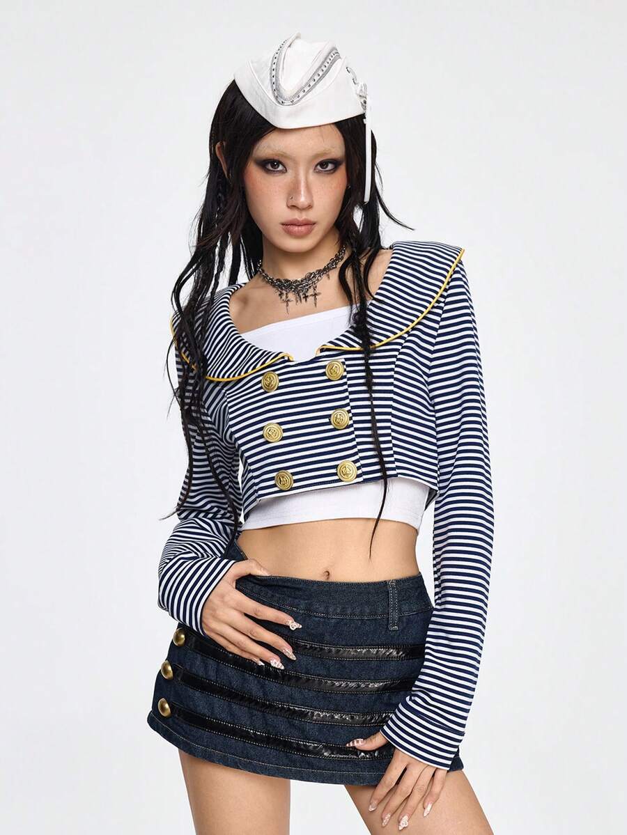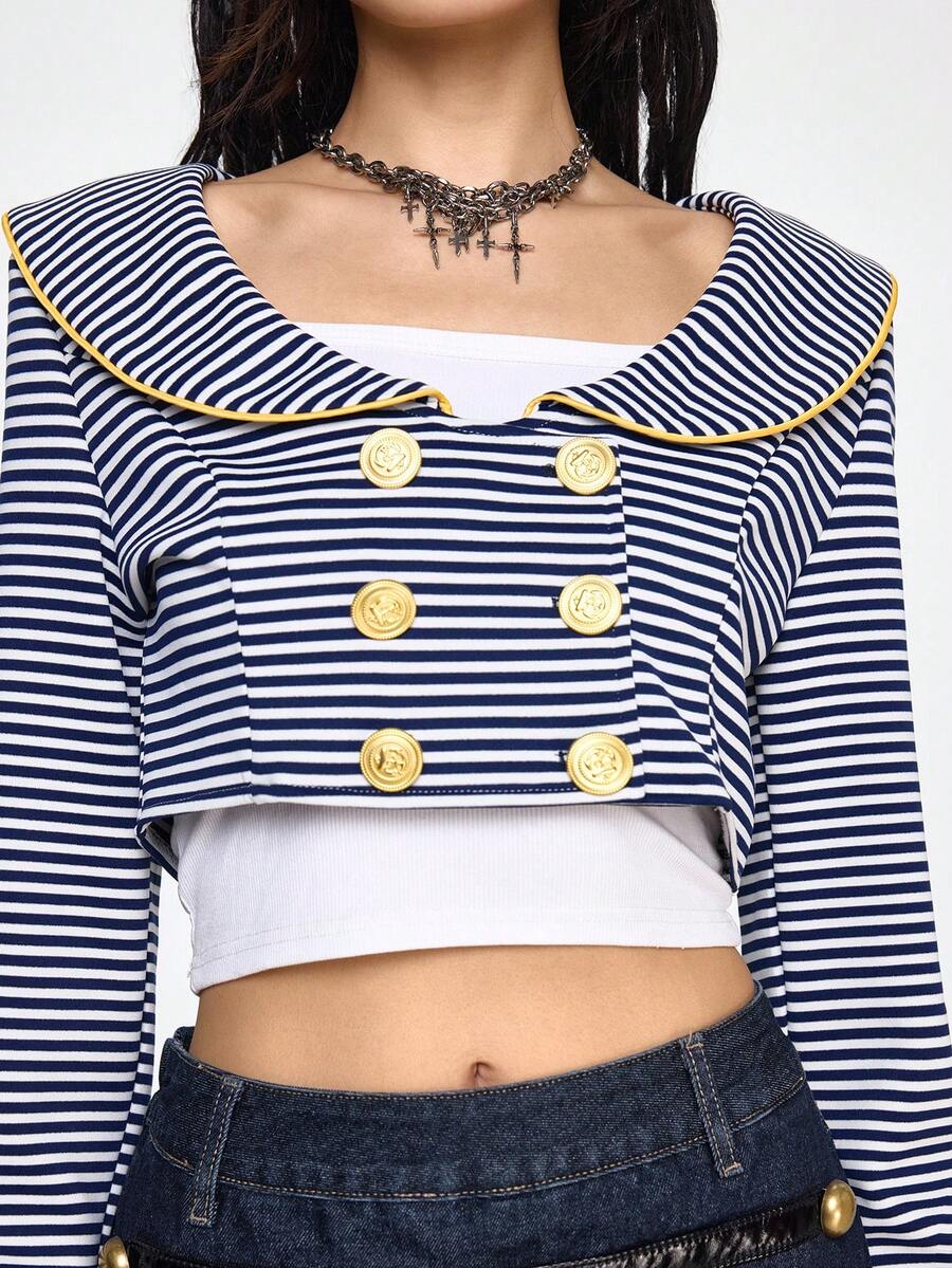 Grunge Punk Retro maritimer marineblau & weiß gestreifter offener leichter Kurzjacke